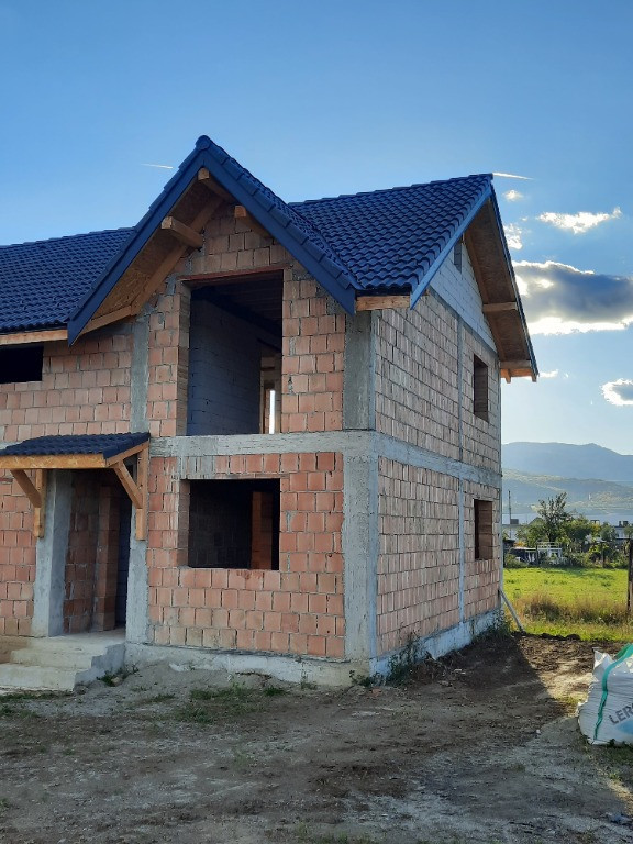 Casa tip duplex de vanzare in Talmaciu in cartier privat de 12 parcele ea cuprinde si se vinde semifinisat avansat astfel. are 3 dormitoare 2 bai living bucatarie camara iar exteriorul la casa finlizat la cheie cu termosistem de 8cm si tencuiala decorativa si in interior instalatia electrica si sanitara introduse,tencuit driscuit incalzire in pardoseala,centrala termica pe gaz cu un teren de 256mp.utilitati apa canal curent iar gazul in curs de introducere.