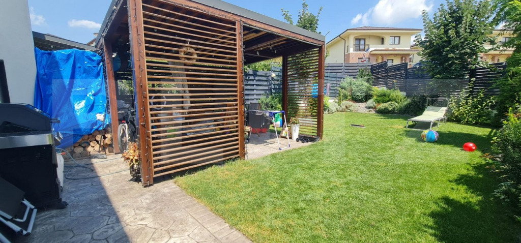 Va propunem spre vanzare o casa cu 4 camere finisata modern in zona Iris. Suprafata casei este de 120 mp + gradina Compartimentarea casei este : La parter - living impreuna cu bucatarie zona de luat masa, baia, spatiu pentru depozitare si iesirea in curte. La etaj - sunt 3 dormitoare si 2 bai , din care unul cu baie proprie si iesire pe balcon , celelalte doua sunt partial mobilate. Curtea este frumos amenajata cu plante ornamentale , iar pentru amenajarea casei si eficientizarea spatiilor au avut un consultant de desing interior . Zona exterioară a casei cuprinde si zona de barbecue, pergola din lemn stratificat, șezlonguri si canapea. Ca si dotari sunt : sistem de supraveghere video, sistem de alarmă. Pentru mai multe informatii sau stabilirea unei vizionari sa ne contactati la numerele de telefon afisate. :) Cod ofertă / ID BLITZ: P129838 Id intern: P129838