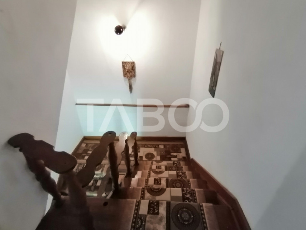 Casa tip duplex de vanzare in zona centrala din Sibiu, aflata intr-o zona linistita de case, amplasata pe un teren in suprafata de 585 mp cu un teren liber de 401 mp si o suprafata utila de 189 mp. Casa principala este construita in anul 1980, avand un regim de inaltime S+P+E+Pod, are un sistem de incalzire cu centrala proprie atat pe gaz cat si pe lemne sau electric, este izolata la interior si este compartimentata astfel: La demisol se afla 2 pivnite, dintre care una a fost transformata in bucatarie de vara iar cealalta este foarte utila pentru depozitare avand o temperatura constanta, camera tehnica in care se afla centrala pe lemne/peleti, cea de gaz si boilerul termo-electric, instalatii de apa si curent trifazic, un grup sanitar de serviciu si scara interioara, avand o suprafata totala de 54,7 mp. La parter se afla 2 camere mari de 24 respectiv 16 mp, bucatarie cu camara, baie, un hol mare cu scari ce duc spre etajul superior cu dressing si o terasa de 8 mp in suprafata totala de 80 mp la parter. La etaj avem 2 camere de 27 respectiv 25 mp, o baie, hol cu casa scarii ce duce spre pod si un balcon de 3,5 mp ce poate fi accesat dintr-una dintre camere. Datorita suprafetei generoase de 66 mp si a faptului ca are o inaltime de 5,5 mp, podul poate fi amenajat ca spatiu de locuit. In spatele curtii se mai afla o casuta mobilata si utilata in suprafata de 50 mp utili, formata din living cu bucatarie si baie in partea de jos si un dormitor mare la etaj, avand toate utilitatile. De asemenea in curte exista si un garaj in suprafata de 45 mp care beneficiaza de curent trifazic, apa, gaz, canalizare, iar podul acestuia poate fi folosit ca spatiu pentru depozitare. Curtea este pavata si prevazuta cu cablari pentru automatizarea portii si videointerfon. Locuinta reprezinta alegerea ideala pentru o familie cu copii, curtea fiind locul ideal de joaca pentru cei mici dar si locul de relaxare pentru cei mari, iar in gradina va puteti bucura de pomi fructiferi, meri, peri, mure, coacaze, capsuni. Utilitati si dotari: - bucatarie: mobilata, utilata; - utilitati: curent trifazic, canalizare, gaz, apa, catv, fibra optica; - izolatii: interior; - usi interioare: lemn. Finisajele interioare: - pereti: vopsea lavabila, faianta; - podele: parchet, gresie; - finisaj: finisat; - geamuri: pvc + termopan; - usa intrare: lemn. Pret: 454.900€ Cod ofertă / ID: P21405 Sună-ne acum la 0369.822.820 și află detalii despre această proprietate de vanzare din Sibiu, dar și despre alte proprietăți potrivite pentru tine. Informatii speciale: 1. Descarcă aplicația pe mobilul tau "TABOO Imobiliare" din Apple Store, Google Play sau Huawei AppGallery pentru a afla instantaneu noile proprietăți care intră pe piață. 2. Dacă ai o proprietate pe care vrei să o vinzi sau să o închiriezi, suntem aici pentru tine! Contactează-ne pentru o evaluare gratuită fără obligații și vei descoperi avantajele de a lucra cu o echipă dedicată și experimentată. 3. Dacă vrei sa incepi o cariera de agent imobiliar, suna la 0369.822.820 si programeaza o intalnire pentru a afla toate beneficiile si avantajele. Intră pe TABOO.ro și descoperă cele mai recente oferte, actualizate zilnic. Anunt actualizat in 5 decembrie 2025. Id intern: P21405