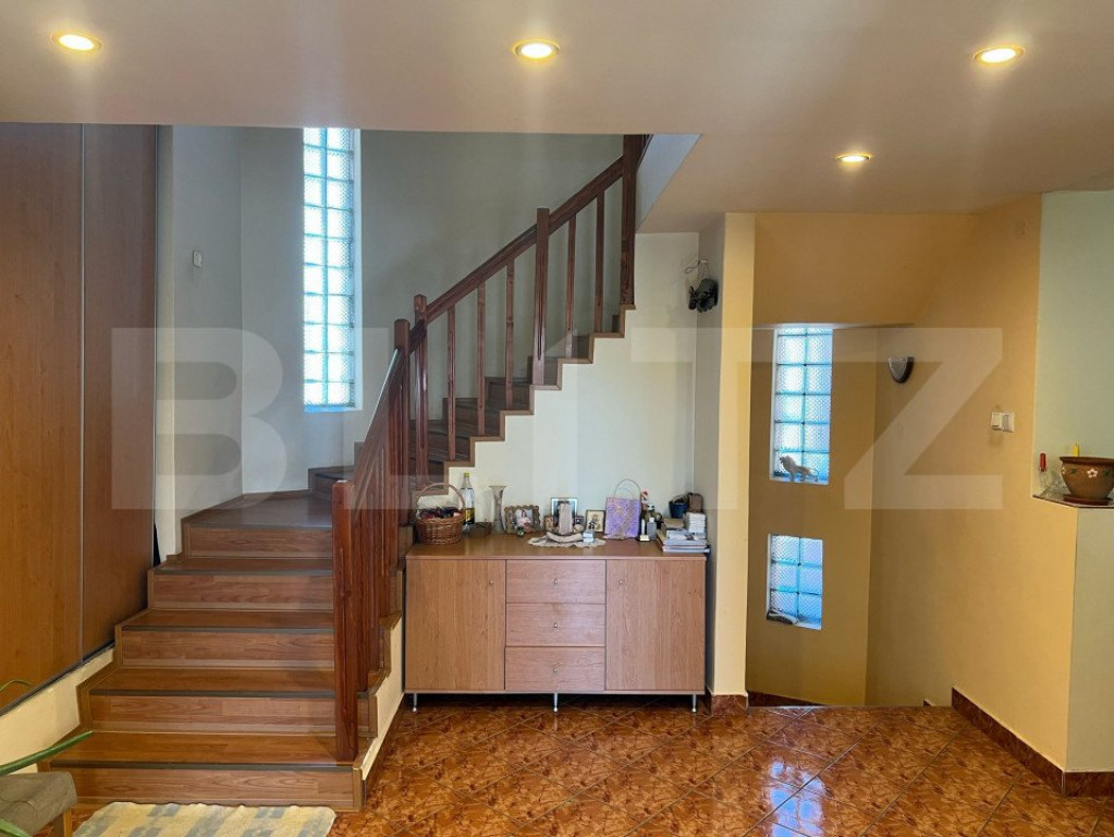 Vânzare casă ideală pentru familie sau pentru dezvoltarea unei afaceri, situată într-o zonă liniștită. Construită din cărămidă în 1997, proprietatea a fost recent izolată și dotată cu geamuri termopan, oferind un confort sporit și eficiență energetică. Casa este compartimentată astfel: Demisol: 2 garaje, bucătărie, pivniță, și centrală termică. Parter: Living generos de 30,5m², bucătărie de 18m², 2 camere, baie, cămară, terasă și vestibul. Etaj: 4 camere, hol, 2 băi și dressing, plus o terasă. Imobilul beneficiază de spații bine compartimentate, fiind perfect pentru o familie, dar și pentru activități comerciale, datorită zonei liniștite și accesibilității. Oportunitate unică de a combina confortul locuinței cu dezvoltarea unei afaceri! Cod ofertă / ID BLITZ: P142900 Id intern: P142900