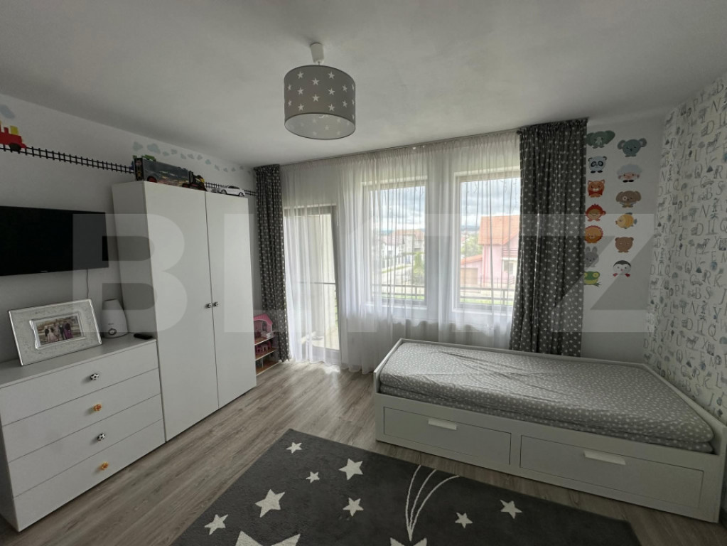 Blitz va propune casa în Criseni in ansamblu rezidential nou. Beneficiaza de 2 locuri de parcare separat fata de curte, structurata pe doua nivele, 136 mp util in casa, anul constructiei 2020. Casa construita din cărămidã, cu izolatie polistiren de 10 cm si izolatie cu celuloza pe planseu, foarte călduroasă si pozitionatã pe tot parcursul zilei în fata soarelui. Sistem fotovoltaic de 6 kw (productie anuală aproximativa 6800 kw), Sistem de supraveghere audio-video. La parter structura este formata din living generos, bucătărie si baie, plus cămară. La etaj 2 dormitoare plus o baie mobilata si utilata cu cada. Fiecare dormitor dispune de mobilier modern,iar camera copiilor dispune de pat care se desface fiind foarte utila si pentru familii cu 2 copii. Balcon cu iesire din ambele camere. Apa de la retea Gaz (centrala) Curent Internet prin fibra optica Fosa septica (infrastructura canalizarii finalizata) Curtea beneficiaza de un spatiu format din terasa din lemn acoperita cu ondulina transparentă, pavaj plus gazon, o terasa mare unde se pot parca pana la 4 masini, iar în spatele casei spatiu de depozitare acoperit. Se vinde complet mobilata si utilata (mobilier si electrocasnice foarte bine întretinute si curate) în momentul de fata nefiind nevoie de absolut nici o investitie suplimentara nici in casa si nici în curte. Cod ofertă / ID BLITZ: P153769 Id intern: P153769