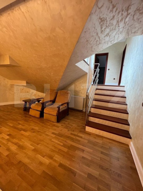 Vă prezentăm o frumoasă casă de tip P+1E situată în zona Strada Botizului, în apropiere de AGO. Această proprietate oferă o serie de facilități deosebite și un design bine gândit. Iată mai multe detalii: Caracteristici Principale: Suprafață Generoasă: Casa are o suprafață mare care se întinde pe două niveluri. Parter: La parter, veți găsi un living generos echipat cu un semineu, un birou, o baie cu cadă cu hidromasaj, o bucătărie spațioasă cu loc de luat masa și acces la o terasă de 25 mp. Etaj: Etajul este compartimentat într-un dormitor cu balcon, un alt dormitor cu baie și balcon, precum și dormitorul matrimonial cu baie proprie, cu cadă cu hidromasaj și dressing. Garaje: Proprietatea include două garaje cu porți automate, oferind spațiu pentru parcare și depozitare. Subsol: Subsolul este compartimentat în trei încăperi, inclusiv o cameră tehnică cu centrală termică și o sală de fitness. Dotări de Calitate: Proprietatea este finisată cu materiale de înaltă calitate, inclusiv parchet de stejar, uși interioare din stejar, gresie și granit pentru pardoseli, scări și pervaze. Sistem de Securitate: Casa este echipată cu un sistem de alarmă și interfon pentru siguranța dvs. Curte Frumos Amenajată: Curtea din spate este amenajată cu un foisor, o baie de serviciu și spațiu verde cu plante mature. Această casă reprezintă o oportunitate excelentă pentru o familie sau persoane care doresc o locuință spațioasă, elegantă și dotată cu facilități moderne. Dacă sunteți interesat, vă rugăm să contactați agentul imobiliar responsabil pentru a programa o vizionare și a obține mai multe informații. Cod ofertă / ID BLITZ: P95941 Id intern: P95941