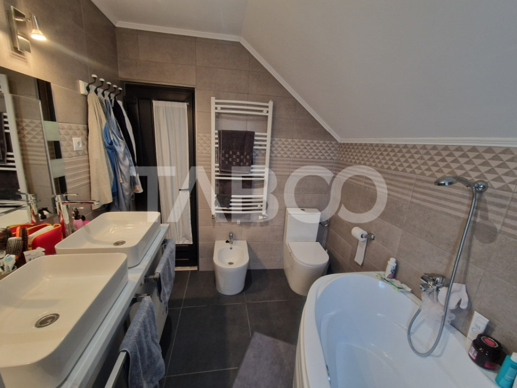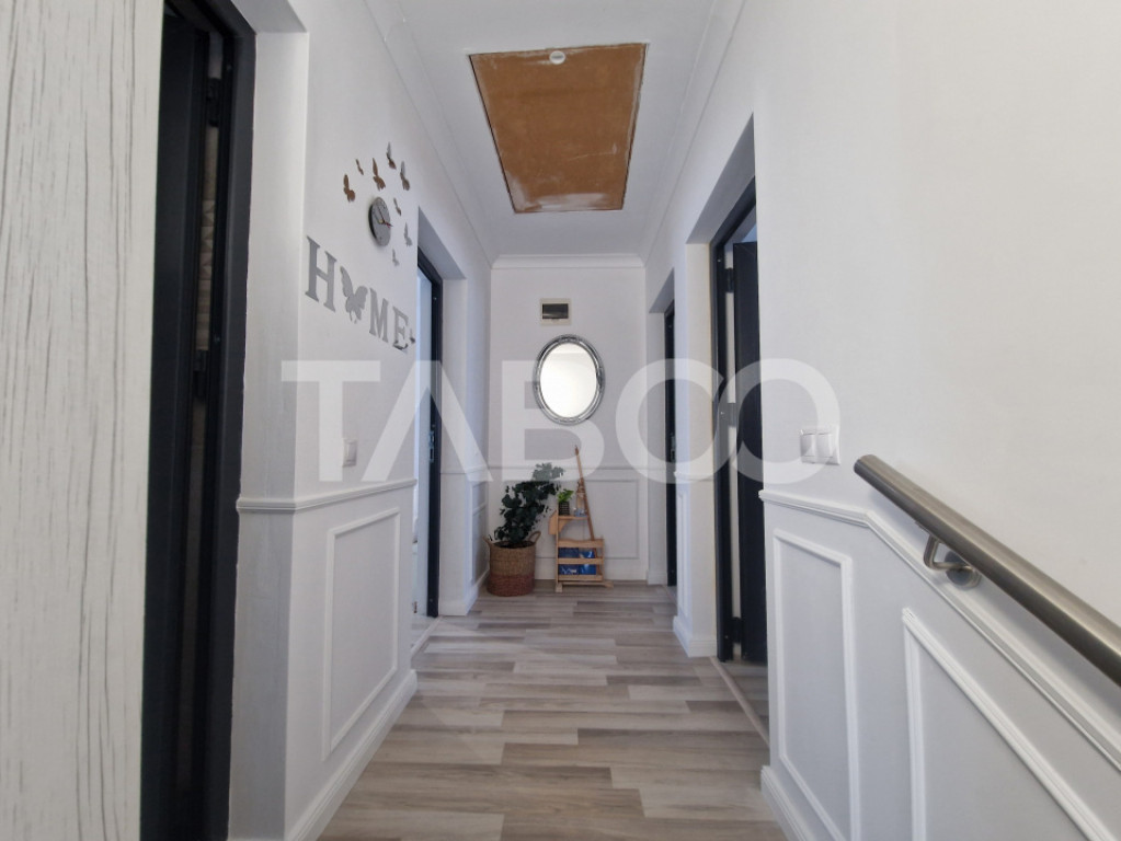 Casa individuala de vanzare in zona fostelor sere din Cristian, judet Sibiu. Casa este formata din 4 camere, suprafata construita de 127 mp si suprafata utila de 100 mp. Casa are un stil modern si elegant, fiind finisata doar cu materiale de calitate superioara. Imobilul are un teren de 253 mp, incluzand spatiu pentru 2 locuri de parcare, avand loc pentru zona de joaca a copiilor si pentru a amenaja o terasa. Casa din Cristian, deja mentionata, este compartimentata astfel: ~ Parter: hol, living, bucatarie, baie; ~ Etaj: hol, 3 dormitoare, baie cu geam de aerisire si cada; ~ Pod: pentru depozitare cu acces din hol. Structura cladirii este din caramida, are sistem de incalzire prin centrala proprie cu incalzire in pardosea la parter, iar la etaj, incalzirea se face prin calorifere. Casa este izolata pe exterior cu polistiren de 10 cm. Finisajele interioare sunt urmatoarele: ~ Usa intrare: metal; ~ Usi interioare: lemn; ~ Tamplarie ferestre: pvc, termopan; ~ Podele: parchet, gresie; ~ Finisaj: finisat; ~ Pereti: vopsea lavabila, faianta. Pret: 214.990€ Cod ofertă / ID: P24551 Sună-ne acum la 0369.822.820 și află detalii despre această proprietate de vanzare din Cristian, dar și despre alte proprietăți potrivite pentru tine. Informatii speciale: 1. Descarcă aplicația pe mobilul tau "TABOO Imobiliare" din Apple Store, Google Play sau Huawei AppGallery pentru a afla instantaneu noile proprietăți care intră pe piață. 2. Dacă ai o proprietate pe care vrei să o vinzi sau să o închiriezi, suntem aici pentru tine! Contactează-ne pentru o evaluare gratuită fără obligații și vei descoperi avantajele de a lucra cu o echipă dedicată și experimentată. 3. Dacă vrei sa incepi o cariera de agent imobiliar, suna la 0369.822.820 si programeaza o intalnire pentru a afla toate beneficiile si avantajele. Intră pe TABOO.ro și descoperă cele mai recente oferte, actualizate zilnic. Anunt actualizat in 5 decembrie 2025. Id intern: P24551