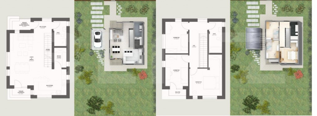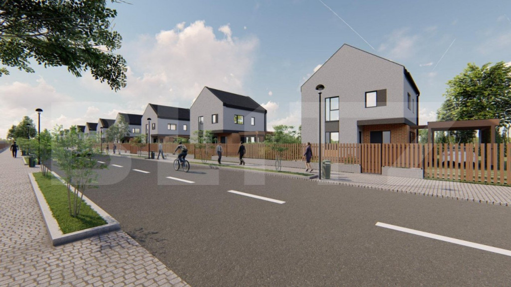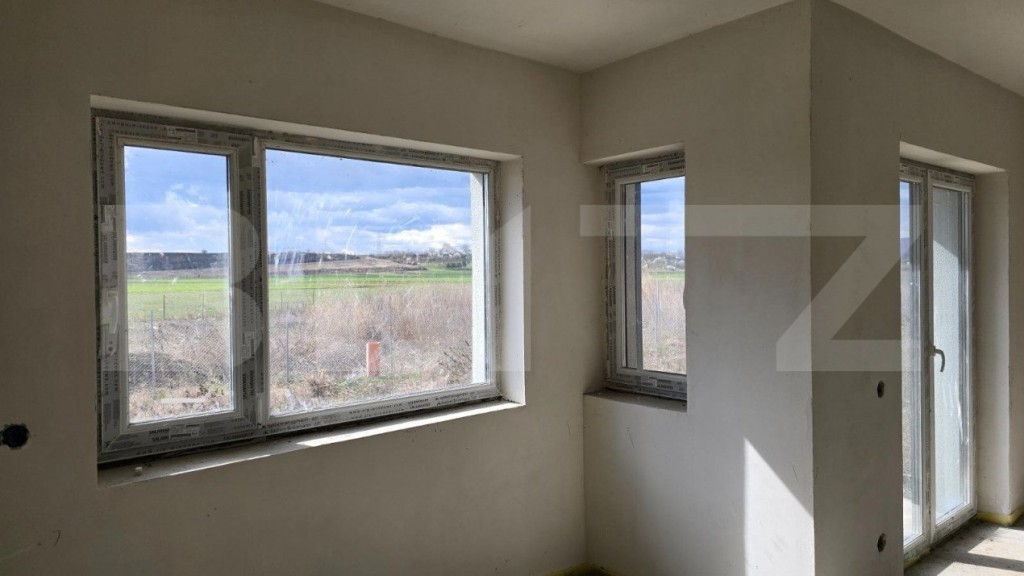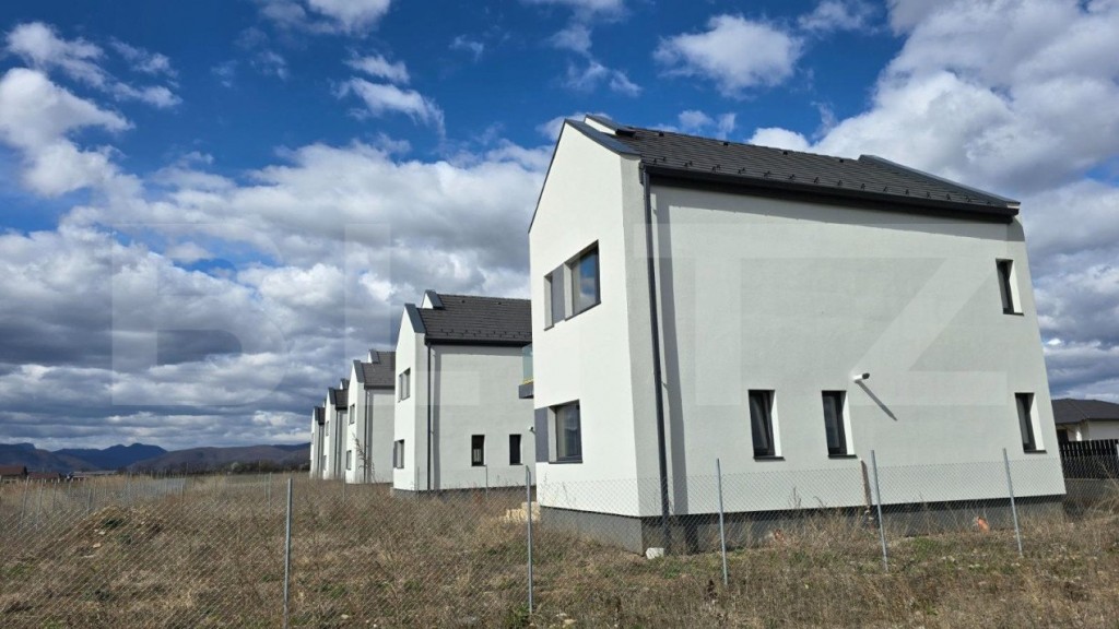 Blitz propune spre vanzare un ansamblu modern de case individuale, situate în localitatea Mihai Viteazu. Este o oportunitate excelentă pentru cei care caută un cămin nou într-o zonă liniștită și accesibilă. Cu o suprafață utilă de 110 mp pe două niveluri și un teren generos de 509 mp, această proprietate oferă confort și spațiu pentru întreaga familie. La parter, veți găsi un living luminos și spațios, conectat fluid cu o bucătărie modernă, formând un open space generos, ideal pentru petrecerea timpului în familie sau pentru a primi oaspeții. Un plus de comoditate îl reprezintă și camera tehnică, perfectă pentru depozitarea diverselor utilități casnice, precum și adăpostul auto, asigurând protecția mașinii în orice condiții meteorologice. Etajul găzduiește 3 dormitoare, oferind suficient spațiu pentru odihnă și intimitate. Dormitorul principal este însoțit de o garderobă, oferind posibilitatea de organizare eficientă a hainelor și accesoriilor. Un balcon încântător completează spațiul de la etaj, oferind priveliști încântătoare către peisajul din jur. Podul circulabil reprezintă o oportunitate excelentă pentru extinderea spațiului locuibil, oferind posibilitatea de a crea încăperi suplimentare sau de a amenaja un spațiu de depozitare generos. Proprietatea este livrată semifinisată, cu materiale de înaltă calitate și finisaje moderne. Beneficiați de izolație exterioară eficientă, cărămidă aparentă și tencuieli decorative, asigurând o estetică plăcută și o izolare termică de calitate. Instalațiile termice și sanitare sunt pregătite pentru a fi finalizate conform preferințelor dvs., iar încălzirea în pardoseală la parter și caloriferele la etaj asigură confortul termic în orice moment al anului. Cu o centrală termică proprie Wiessmann și un boiler cu două serpentine, veți beneficia de un confort termic și de apă caldă în mod constant. Ferestrele tripan termoizolante din PVC asigură o izolare eficientă fonică și termică, iar acoperișul din țiglă de beton Bramac oferă protecție durabilă împotriva intemperiilor. Proprietatea dispune de toate utilitățile necesare, inclusiv conexiune la rețeaua de gaz și curent trifazic, put cu hidrofor conectat la pânza freatică și fosa septica. Sunt disponibile 8 case. Pretul afisat include TVA de 21%. Contactați-ne pentru mai multe informații sau pentru a programa o vizionare! Cod ofertă / ID BLITZ: P105780 Id intern: P105780
