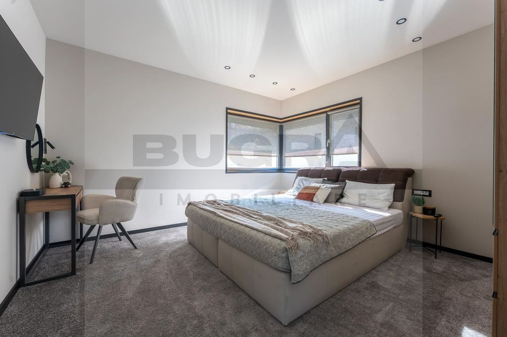 Bugra Imobiliare va ofera spre vanzare o casa finisata si mobilata complet, totul fiind nou si de ultima generatie, in Baciu, zona Suceagu. Compartimentare Parter-> Living - dinning cu ieșire pe balcon Bucătărie separata cu intrare in spațiul tehnic Baie modernă Dressing sub casa scarii Etaj->Dormitor matrimonial mobilat complet, cu baie si dressing proprii Dormitor oaspeți mobilat complet Camera cu balcon parțial mobilată Baie cu duș și mașina de spălat haine, cu intrare din hol Casa se predă complet finisată si mobilata, exact ca si in poze. Detalii tehnice: Suprafata utila P+E-> 120 mp Curte libera-> 500 mp Va asteptam cu drag la vizionari!