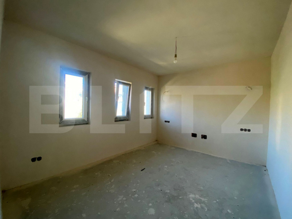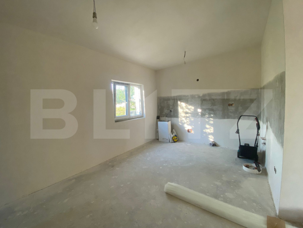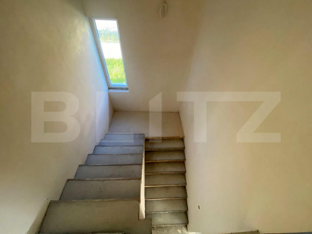 BLITZ va ofera spre vanzare o casa individiuala situata in Chinteni, intr-o zona foarte accesibila, cu acces asfaltat, amplasata pe un lot de teren de 470 mp, cu front generos la 2 strazi. Casa este constructie noua, pe fundatii din beton si zidarie din caramida, precum si acoperis tip sarpanta din lemn cu invelitoare din tigla. Este dispusa pe 2 niveluri, astfel: - PARTER: camera de zi, bucatarie, baie, spatiu tehnic precum si terasa. - ETAJ: 3 dormitoare, 1 baie, si un balcon tip terasa Casa se vinde la stadiul de semifinisat cu sistem de incalzire prin pardoseala si centrala termica proprie, geamuri termopan, sape, pereti tencuiti si gletuiti, instalatii electrice si sanitare trase la pozitie, precum si toata partea de exterior finalizata. Se preda cu toate utilitatile racordate, apa, gaz, curent, si canalizare. O casa construita cu foarte multa atentie si seriozitate. Va stam cu placere la dispozitie pentru mai multe detalii si stabilirea unei vizionari! Cod ofertă / ID BLITZ: P151958 Id intern: P151958