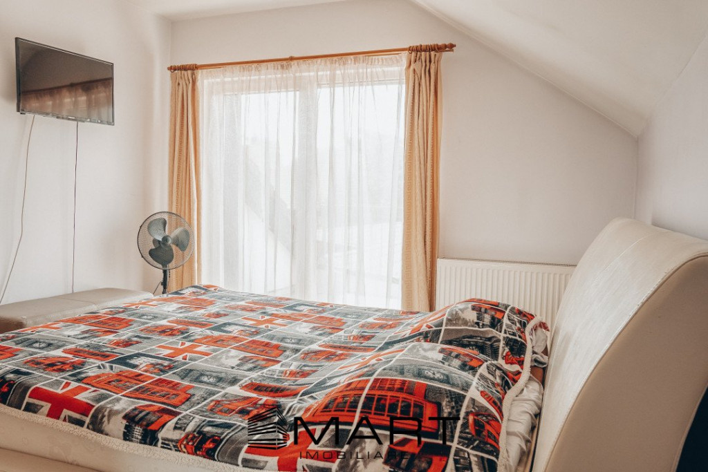 Smart Imobiliare vinde casa individuala situata in zona Brana din Selimbar. Casa dispune de un teren de 472mp, din care liberi aproximativ 315mp si are o deschidere la strada de 18ml. Suprafata utila este 119mp plus o terasa acoperita si inchisa, o terasa acoperita deschisa si un garaj care a fost transformat in spatiu de lucru cu baie. Casa dispune la parter de un dormitor, living spatios, bucatarie separata, baie si hol. La etaj sunt 2 dormitoare spatioase cu baie si 2 balcoane. Imobilul se vinde mobilat si utilat, dispune de centrala proprie cu incalzire cu calorifere. Zona este una linistita, aproape de magazine, zona pietonala pentru recreere, si la mica distanta de centrul comercial Curtea este amenajata cu zona verde si pavaj si permite accesul auto pentru mai multe autoturisme, dispune de poarta actionata electric. Zona este una linistita, aproape de magazine, zona pietonala pentru recreere, si la mica distanta de centrul comercial, strada este asfaltata si iluminata, facilitează accesul rapid către artere principale și servicii esențiale. Sunati pentru vizionare si precizati ID: P15907 Id intern: P15907