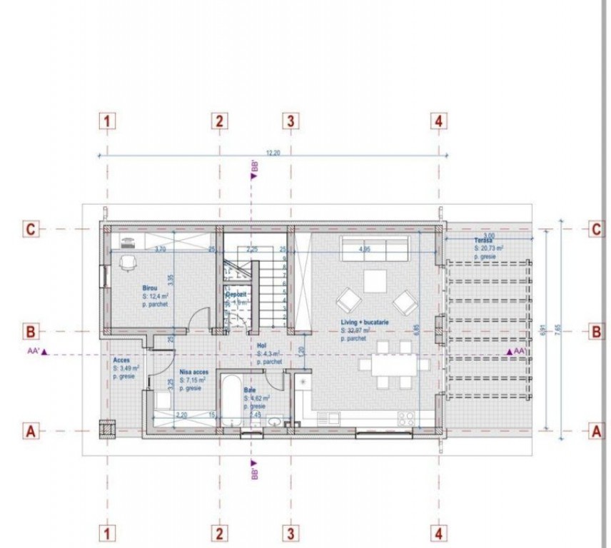 Blitz ofera spre vanzare o casa individuala cu suprafata utila de 125 mp, amplasata pe un teren de 500 mp cu acces direct din E60. Compartimentarea se prezinta astfel : - la parter avem un living + bucatarie, birou, hol, nisa de acces, baie si o terasa cu suprafata de 21 mp - etajul este compus dintr-un dormitor matrimonial cu dressing si balcon, baie si 2 dormitoare cu acces comun pe un alt balcon Casa se va preda la stadiul de FINISAT cu centrala termica si incalzire in pardoseala, instalatiii electrice si sanitare trase la pozitie, peretii o sa fie tencuiti si un zugraviti, pegatit tot pana la mobilier, tot ce tine de exteriorul cladirii si amenajariile exterioare o sa fie realizate de catre constructor. Din punct de vedere al contructiei este realizata din beton si caramida si invelitoarea acoperisului este realizata din tigla ceramica . In vecinatatea cladirii va fi amenajat si un spatiu care va avea ca scop parcarea a 2 masini ! Estimare CF vara anului 2024 ! Cod ofertă / ID BLITZ: P90439 Id intern: P90439