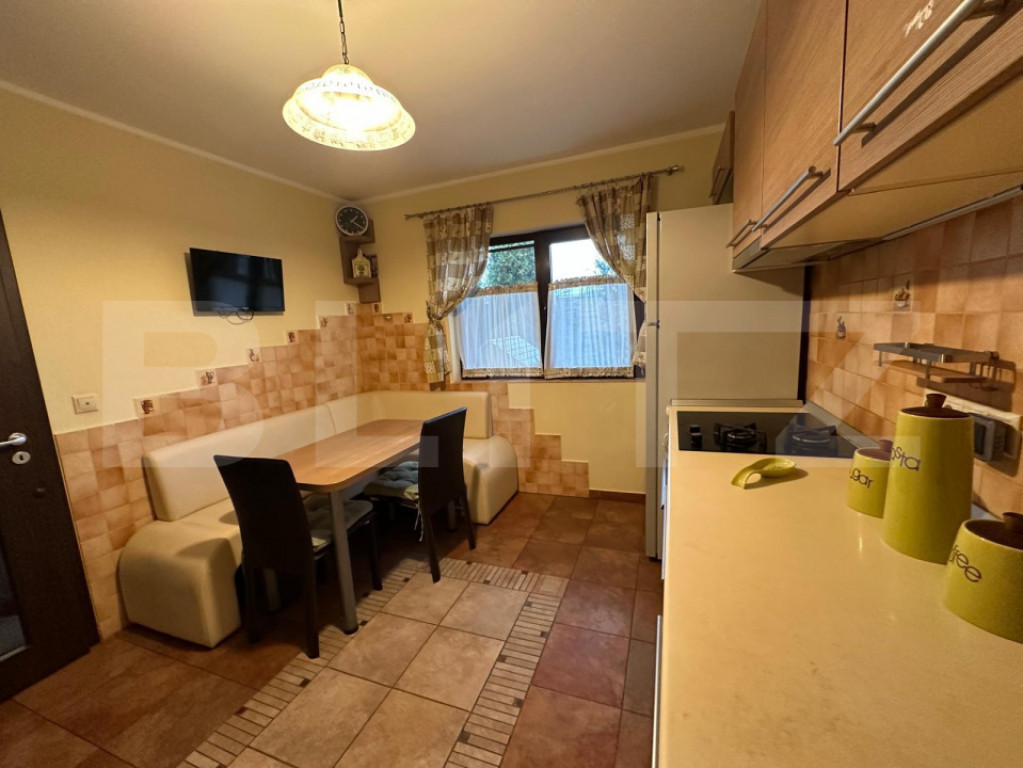 Blitz vă propune spre închiriere o casă individuală, spațioasă și elegantă, complet mobilată, ideală pentru familii care caută confort și intimitate pe termen lung. Cu o suprafață utilă de 140 mp, locuința este eficient compartimentată: la etaj se află 3 dormitoare și o baie cu cadă, iar la parter un living luminos, bucătărie funcțională, toaletă și acces direct pe terasă și în curte. Proprietatea dispune de garaj separat, cu beci spațios dedesubt. Terenul de 400 mp oferă un cadru ideal pentru relaxare și activități în aer liber. ???? Pentru detalii și vizionări, vă stăm la dispoziție. Cod ofertă / ID BLITZ: P168503 Id intern: P168503