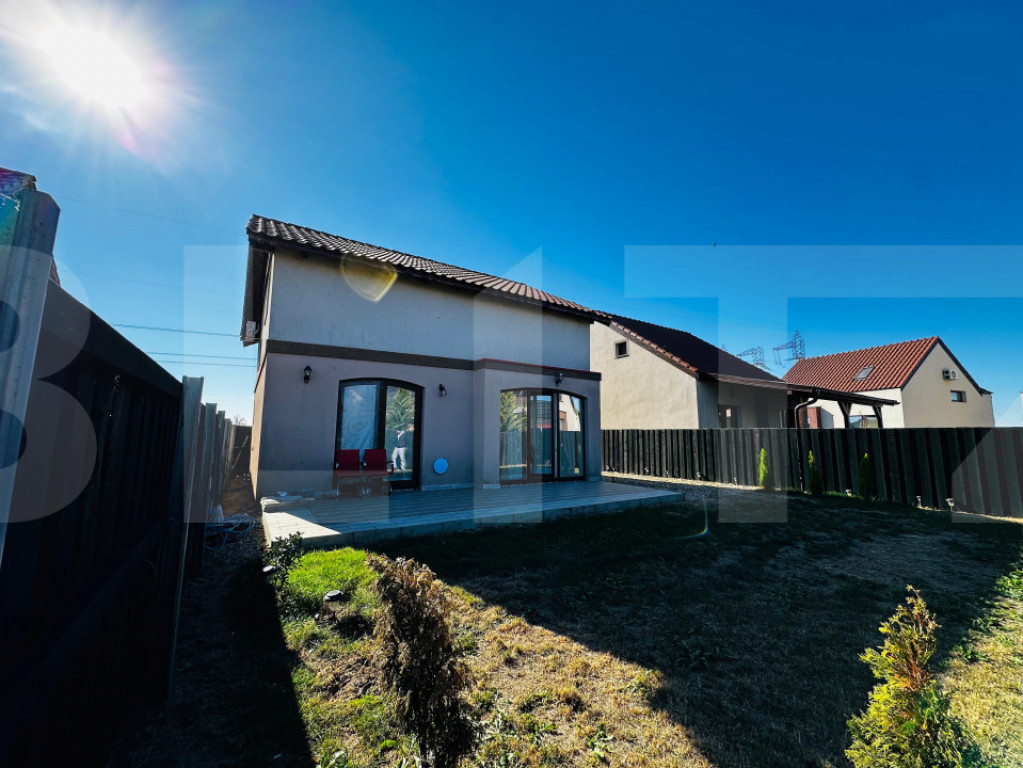 Casa este desfășurată pe o suprafață construită de 142 mp și este amplasată pe un teren de 250 mp, la care se adaugă o peluză de aproximativ 100 mp. Frontul stradal este de 12 metri liniari.
