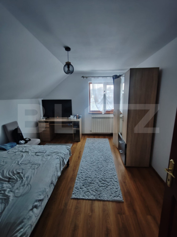 Casa se vinde complet mobilată și utilată, fiind pregătită pentru mutare imediată. Proprietatea dispune de multiple facilități care oferă confort și autonomie: garaj, cameră tehnică cu centrală pe lemne, boiler și hidrofor, beci, anexă pentru depozitare, 2 fântâni.