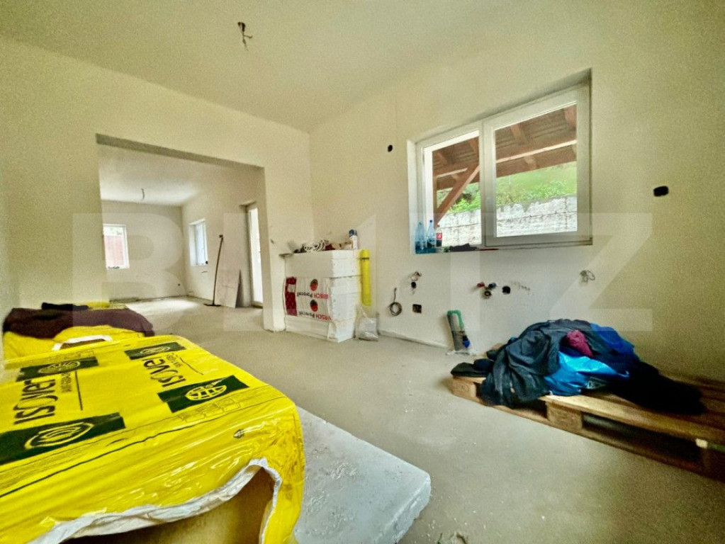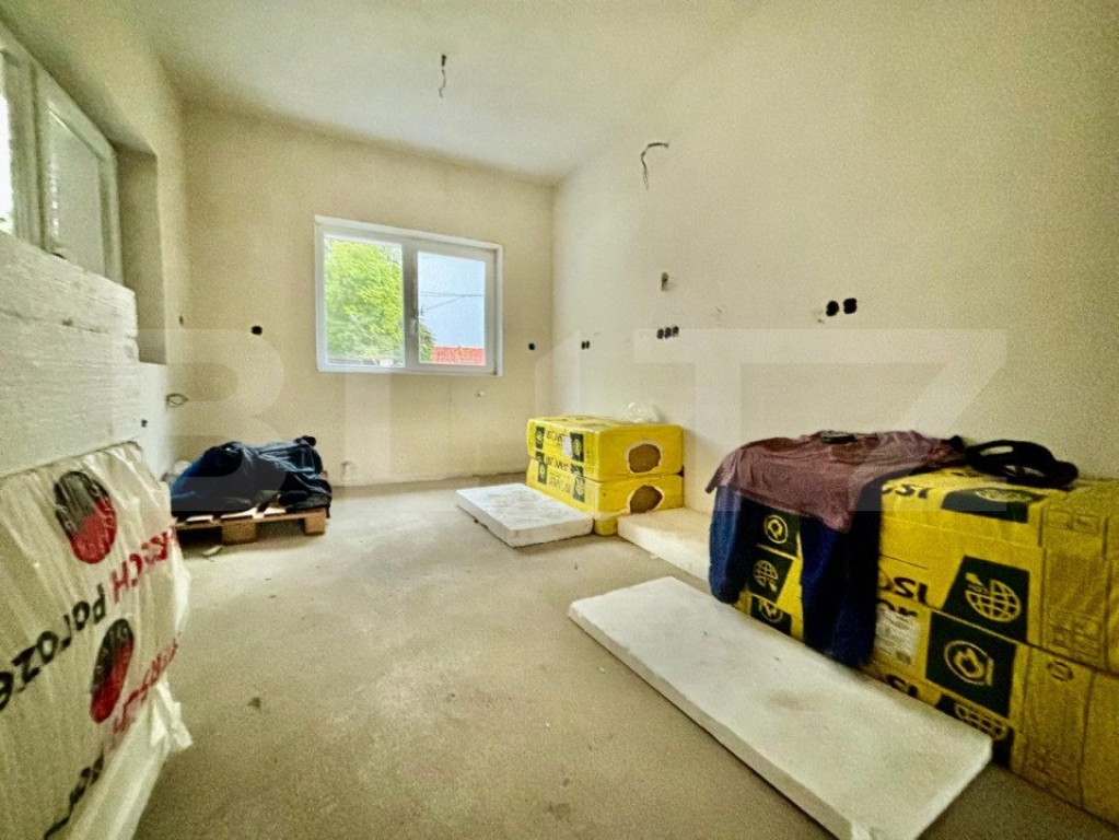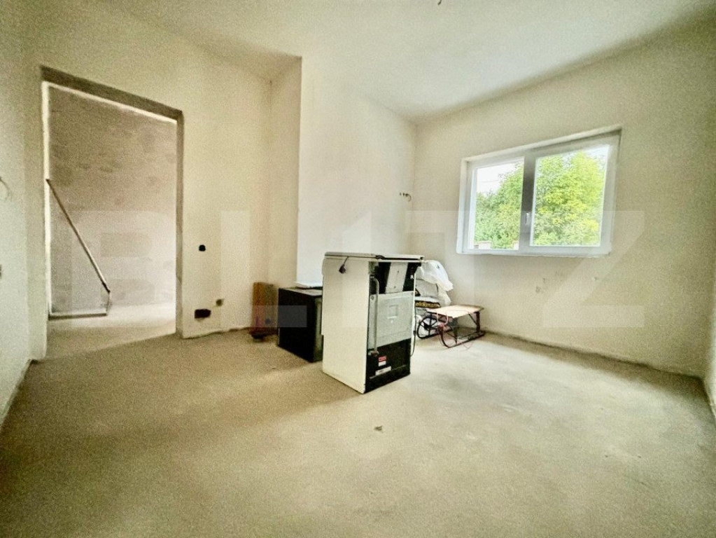 Blitz va ofera spre vanzare casa individuala, situata intr-o zona accesibila din Chinteni. Casa este finalizata si are o suprafata utila de 151 mp utili. Este dispusa pe 2 niveluri, compartimentata astfel: -parter - 79mp: hol, living mare (29,3mp), bucatarie, dormitor, baie , camera tehnica si terasa - mansarda 71,8mp: hol, 3 dormitoare (unul cu baie proprie si dressing spatios, baie, doua balcoane. Casa se preda cu toate utilitatile (apa, gaz, curent, canalizare) la stadiul de aproape finisat, cu geamuri si usa de la intrare termopan cu tamplarie din PVC. Suprafata de teren aferenta imobilului este de 580 mp. Casa se preda la stadiul de aproape finisat cu pereți tencuiți si un strat de glet cu plasa in toată casa, pereți exterior izolați și dati cu decorativa, gard complet Mai beneficiaza si de o pivnita de 16mp cu sapa turnata si foisor deasupra acesteia. - acoperis cu țiglă Bramac - constructie din cărămidă porotherm + izolatie exterioara cu polistiren extrudat de 10 cm - tencuiala decorativa cu silicon de la EUROMGA culoare luna2224, Bob de orez 1,5 - tamplarie termopan Gealan de culoare albă - pereti interiori tencuiti cu tencuiala pe baza de var ciment baumit MPI 25 -un strat de glet cu plasa in toată casa -instalatii termice, sanitare (marca Geberit) si electrice trase pe pozitii ; -sapa turnata în interior și pe terasa - curent trifazic (380V) - fantana pe teren -utilitati trase la pozitie Cod ofertă / ID BLITZ: P2453 Id intern: P2453