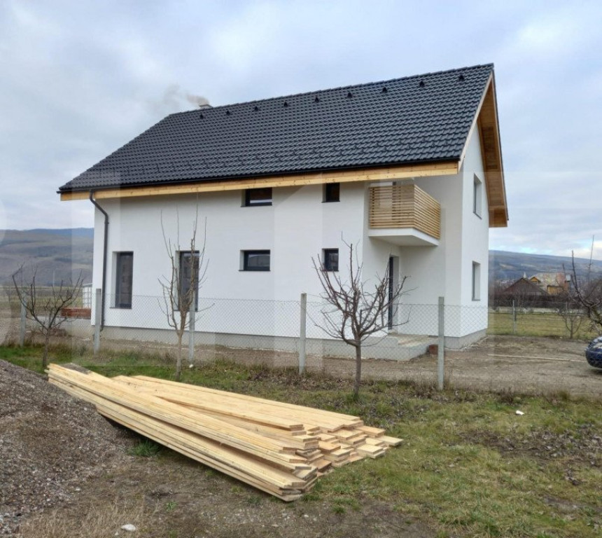Blitz ofera spre vanzare casa individuala situata in comuna Mihai Viteazu, intr-o zona frumoasa si linistita, asezata la poalele Muntilor Trascaului si in vecinatatea Cheilor Turzii. Casa are o suprafata utila de 160 mp, este pozitionata pe o parcela de 692 mp si este dispusa pe 3 niveluri: S+E+M dupa cum urmeaza: Subsol : pivnita si hol cu acces la parter; Parter: hol intrare, living cu loc de luat masa si iesire pe terasa de 25 mp, bucatarie, baie, debara. Mansarda : 3 dormitoare, baie, debara, 2 balcoane, hol, casa scarii. Podul este inalt. Beciul este hidroizolat si termoizolat cu polistiren de 10 cm. Zidaria este de 30 cm Porotherm 30 Robust. Termosistemul este realizat cu polistiren de 15 cm, iar tamplaria este de foarte buna calitate, de la Veka, 3 sticle, profil cu 7 camere. Casa se preda la stadiul actual : fatada finalizata, instalatii electrice si sanitare trase pe pozitii, pereti tencuiti, racorduri la toate utilitatile. Pentru stadiul semifinisat : pereti gletuiti, izolatie cu vata bazaltica 15 cm in pod, tavane rigips, incalzire in pardoseala atat la parter cat si la etaj, centrala termica pe gaz. Proprietatea este imprejmuita cu gard si este racordata la toate utilitatile: apa, canalizare, gaz si electricitate. Accesul se face pe un drum asfaltat si permite conexiunea rapida cu autostrazile A3 si A10. Cod ofertă / ID BLITZ: P90488 Id intern: P90488
