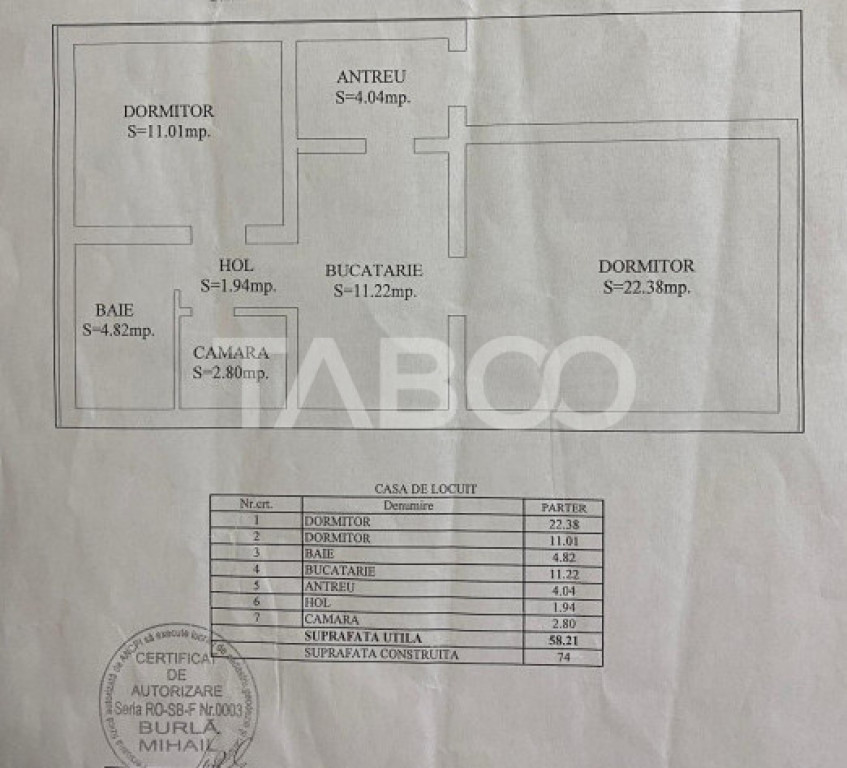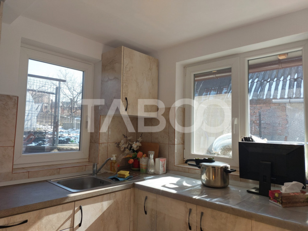 Casa individuala de vanzare amplasata pe o parcela de 440 mp de teren in Cisnadie. Casa este o casuta mica, cu o suprafata de 58 mp compusa din 2 dormitoare o bucatarie, hol, baie si camara de depozitare. Casa are curte si gradina de zarzavat iar in curte, in spate, exista o bucatarie de vara mobilata si utilata complet si o magazie pentru depozitare Casa a fost construita in anul 1955 pe structura de caramida si a fost renovata in 2019 cand s-a izolat pe exterior si s-a schimbat lemnaria acoperisului si tigla in totalitate, s-au montat geamurile termopane si alte lucrari de renovare micute. Incalzirea se realizeaza prin centrala termica si calorifere, geamurile sunt tip termopan cu structura pvc, usile interioare sunt tip mai vechi din lemn iar usa exterioara este din metal. In curtea casei se pot parca 2 masini iar gradina din spatele casei este suficienta pentru o gradina de zarzavat sau loc de relaxare in natura. Casa este una micuta, pe un singur nivel si este ideala pentru cuplurile care cauta case mai mici ( rare de altfel) iar costurile sunt reduse datorita suprafetei de 58 mp utili ai casei. Proprietatea este aproape de toate facilitatile orasului dar totusi este intr-o zona mai retrasa si departe de agitatia orasului. Pret: 129.990€ Cod ofertă / ID: P22910 Sună-ne acum la 0369.822.820 și află detalii despre această proprietate de vanzare din Cisnadie, dar și despre alte proprietăți potrivite pentru tine. Informatii speciale: 1. Descarcă aplicația pe mobilul tau "TABOO Imobiliare" din Apple Store, Google Play sau Huawei AppGallery pentru a afla instantaneu noile proprietăți care intră pe piață. 2. Dacă ai o proprietate pe care vrei să o vinzi sau să o închiriezi, suntem aici pentru tine! Contactează-ne pentru o evaluare gratuită fără obligații și vei descoperi avantajele de a lucra cu o echipă dedicată și experimentată. 3. Dacă vrei sa incepi o cariera de agent imobiliar, suna la 0369.822.820 si programeaza o intalnire pentru a afla toate beneficiile si avantajele. Intră pe TABOO.ro și descoperă cele mai recente oferte, actualizate zilnic. Anunt actualizat in 5 decembrie 2025. Id intern: P22910