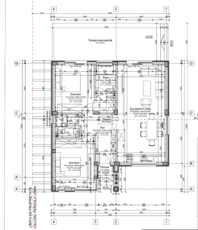 Placă de beton deasupra parterului, oferind durabilitate și stabilitate construcției.