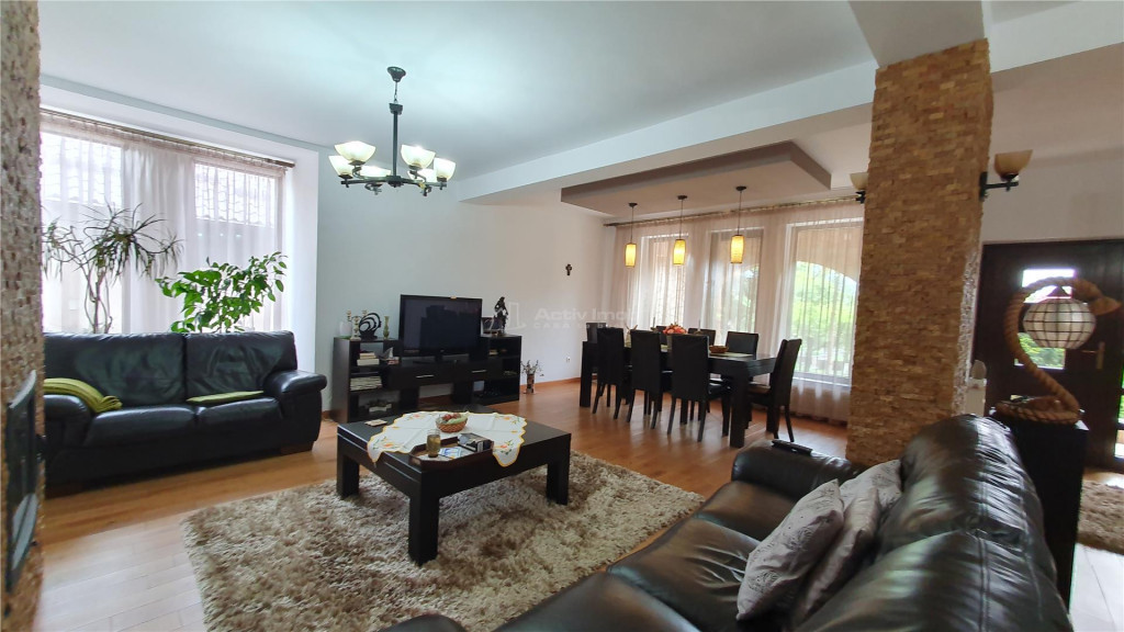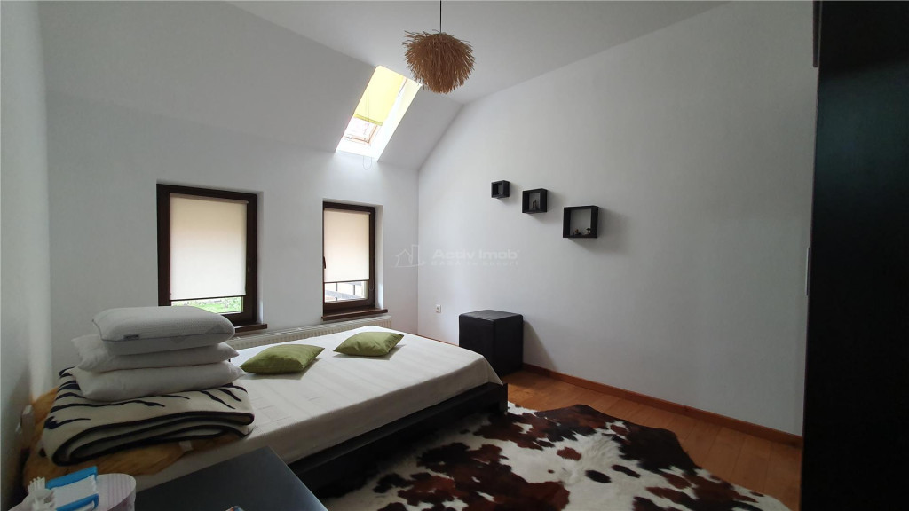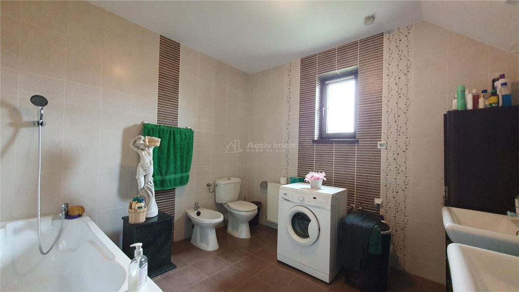 BENEFICII PENTRU CLIENTII ACESTEI OFERTE: 1. Beneficii oferite de zona: - mijloace de transport in comun se afla la doar 4 minute de mers pe jos, tot aici gasim si un mic parc de relaxare - la doar 3 minute distanta avem supermarket Profi - 10 minute de mers pe jos, gasim institutii de invatamant, scoli si gradinite modernizate, asigurand un mediu educational adecvat pentru copii 2. Beneficii tehnice ale ofertei: - proprietatea este compusa dintr-o casa cu regim de inaltime P 1E M, compartimentata eficient pentru o familie moderna - parterul este compus dintr-un living spatios, luminos cu un semineu functional si zona de luat masa cu familia sau prietenii, bucatarie, baie si camera tehnica - la etaj avem 3 dormitoare, 2 baii, dressing si o terasa, ideala pentru relaxare - iar mansarda ne ofera o camera versatila, ideala pentru relaxare, ce poate fi transformata intr-o sala de sport, cinema sau spatiu de joaca pentru copii, fiind dotata cu baie proprie si sauna - anexa ofera functionalitate suplimentara, fiind compartimentata astfel: garaj cu beci spatios, bucatarie, living, dormitor si baie - utilitati: apa din fantana, canalizare privata, centrala pe gaz, curent electric, supraveghere video - curtea este complet amenajata cu pavaj, gazon, livada, gradina si un spatiu retras, perfect pentru intimitate si relaxare - casa se vinde mobilata si utilata (fara canapele si masa din living) 3. Situatia juridica: - liber de sarcini - COMISION 0% ID ACTIV IMOB: 229358 CASA te bucuri!!!
