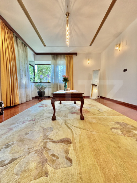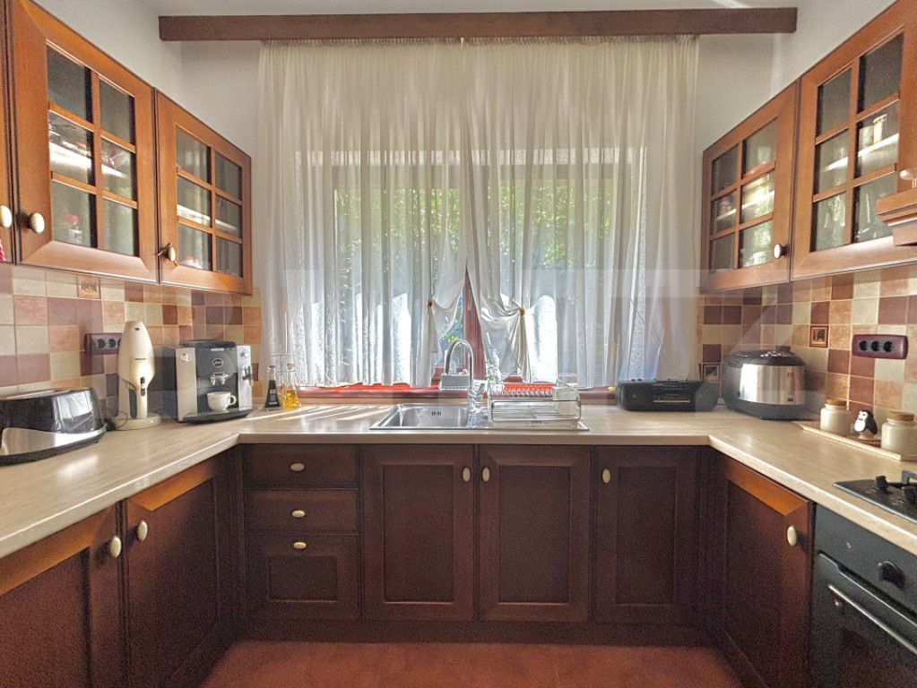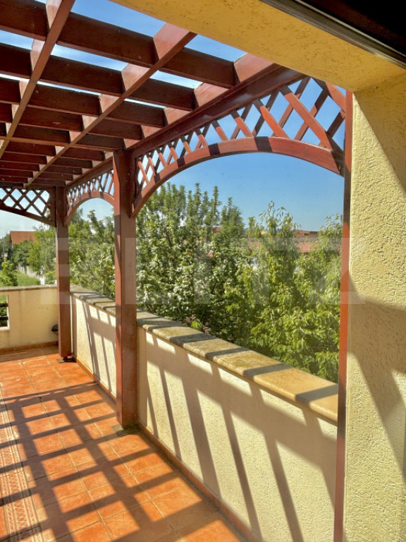 Avem placerea sa va prezentam spre vanzare o casa cu o arhitectura si compartimentare deosebita, intr-o zona usor accesibila si foarte linistita. Casa a fost finalizata in anul 2007, are o suprafata utila de 260 mp, teren de 868 mp si front stradal de 18 ml. Este dispusa pe Demisol+Parter + Etaj + Etaj retras avand urmatoarea compartimentare: Demisol: Garaj incalzit ( 26Mp), wc serviciu (2,80mp), spalatorie si camera tehnica (8,10mp). Parterul este compus dintr-un portic de intrare, hol generos (20,3mp) care are un dulap inzidit pentru haine si face distributia catre celelalte spatii, tot aici se afla si scara de acces la etaj si demisol. Urmeaza biroul de 16,5mp si o baie (3 mp). Livingul spatios ( 35,7 mp) este separat de hol printr-o treapta si comunica cu locul de luat masa (20 mp, loc suficient pentru 12 persoane), bucataria complet mobilata, utilata si camara de 3 mp. Etajul : 2 dormitoare , fiecare avand 16,6 mp si o baie de 7.70mp. Separat avem dormitorul matrimonial (25,10 mp) , baia (7,5 mp dotata cu doua lavoare,wc, bideu si vana) si un dresing de 7,45 mp. Toate dormitoarele beneficiaza de cate o terasa/ balcon de 10,4 mp, 9,90 mp si respectiv 24,2mp. Etajul retras este prevazut ca spatiu pentru hobby aici aflandu-se un living cu un mini bar si o terasa generoasa de 38,4 mp inclusiv o terasa (incalzita) inchisa , gradina de iarna, loc in care se pot depozita iarna plantele ornamentale sau te poti bucura de privelistea iernii fara sa simti frigul de afara. Gradina este amenajata cu arbusti ornamentali, pomi fructiferi si gazon, tot aici se afla si un spatiu amenajat pentru gratar. Carportul poate adaposti doua autoturisme iar in curte se mai pot parca inca doua. Încălzirea imobilului este realizată de centrala proprie pe gaz, prin calorifere. Casa se poate vinde complet mobilata si utilata sau partial mobilata (mobila este din lemn masiv de foarte buna calitate), beneficiaza de fereste tip termopan din lemn, sticla tip vitraliu, usi interioare din lemn, aer conditionat, sistem de alarma, video interfon, telecomanda pentru poarta de acces auto si pentru garaj. Pentru a te convinge de tot ce am descris aici te asteptam la o vizionare. Garantat , in realitate arata mult mai bine decat in poze. Cod ofertă / ID BLITZ: P6544 Id intern: P6544