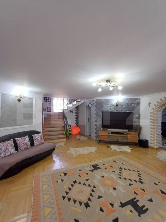 Descoperiti oportunitatea unica de a deveni proprietarul unei case de vis in Mihai Viteazu, o locatie care combina perfect intimitatea unui camin linistit cu acces facil la facilitatile esentiale. Aceasta proprietate impresionanta, se afla in apropiere de Cheile Turzii, ceea ce o face ideala atat pentru a fi transformata intr-o pensiune primitoare, cat si pentru a gazdui o familie numeroasa, datorita designului sau inteligent si spatiului generos. Casa este construita pe un teren cu suprafata totala de 1337 mp, amprenta la sol fiind de 136 mp, iar cea utila de 262 mp. Curtea este spatioasa si cuprinde un foisor de 44 mp, complet mobilat si utilat. Imobilul este construit in 2021, din caramida si are regim de inaltime S+P+E. La subsol avem garaj si pivnita, garajul fiind transformat in sala de sport complet utilata. La parter avem un hol la intrare, camera de zi spatioasa, o camera de lectura sau birou, o bucatarie cu camara, camera tehnica si iesire in curtea din spate spre foisor, 2 bai si terasa acoperita. La etaj avem 3 dormitoare, o baie, un hol si balcon cu priveliste catre Cheile Turzii. Proprietatea are geamuri termopan de 6 cm, parchet din lemn masiv si lemn de bambus. Este izolata la exterior cu polistiren si la interior cu vata minerala si rigips. Are clasa energetica A. In curtea din spate exista si o toaleta exterioara. Pentru a descoperi cum aceasta proprietate remarcabila poate deveni noua dumneavoastra casa sau o investitie profitabila, va invitam sa ne contactati. Nu pierdeti ocazia de a vizita si, eventual, de a achizitiona aceasta casa splendida la doar 12 minute de Cheile Turzii, un spatiu unde confortul, eleganta si functionalitatea se intalnesc armonios. Cod ofertă / ID BLITZ: P148505 Id intern: P148505