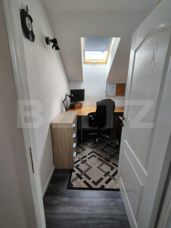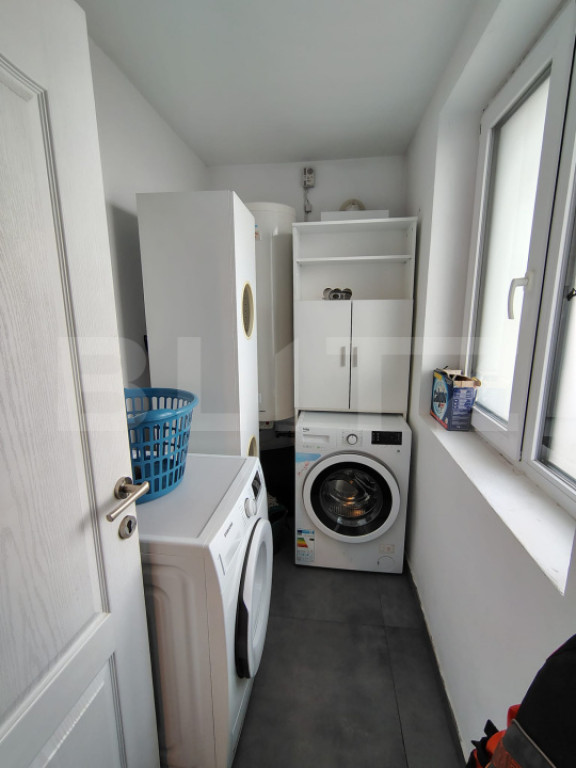 BLITZ oferă spre vânzare casă individuală, o proprietate modernă, situată într-o zonă rezidențială, în cartierul Tineretului din Iris. Casa prezintă un regim de înălțime P+E+Pod, cu curte generoasă și aerisită, cu garaj acoperit. Proprietatea dispune de o suprafață utilă de 108 mp, amplasată pe un teren de 486 mp, edificată în anul 2017. Compartimentare atent realizată: • Parter: hol de acces, living cu zonă de dinning și ieșire pe terasă acoperită cu marchiză, bucătărie deschisă, baie de serviciu cu duș, debara dispusă sub scări, cameră tehnică; • Etaj: hol de acces, 2 dormitoare dintre care unul cu dressing, 1 cameră birou, baie, 2 balcoane. Casa a fost construită pentru uz personal, acest lucru se reflectă în calitatea execuției, în materialele folosite și în modul în care a fost gândită pentru confort real. Din cărămidă Porotherm de 30 cm, cu izolație exterioară din vată bazaltică de 15 cm și tâmplărie cu geam termopan cu eficiență termică superioară. Podul și etajul sunt izolate cu vată minerală, beneficiază de sistem de pod cald, cu izolație la nivelul tavanului până în coama acoperișului, astfel că se predă în stadiul finisat, mobilată și utilată. Sistemul de confort practic include: centrală termică Ferroli, încălzire în pardoseală în zonele cu gresie, radiatoare în camere, boiler cu dublă serpentină, alimentat electric sau din panouri solare, termoșemineu conectat la sistemul de încălzire al casei, aer condiționat tip invertor Daikin capacitate 18.000 BTU Exterior: curte pavată, locuri de parcare, garaj, foișor cu cuptor, grătar și sobă, fântână de 9 m pentru irigații și sistem automatizat pentru pompă, sprinklere și alimentarea cu apă în zona foișorului, împrejmuire cu gard de piatră și profile metalice, poartă acces auto automatizată. Este o proprietate perfectă pentru așteptări și nevoi de calitate superioară. Pentru o experiență relevantă și mai multe detalii vă așteptăm la o vizionare! Cod ofertă / ID BLITZ: P169803 Id intern: P169803