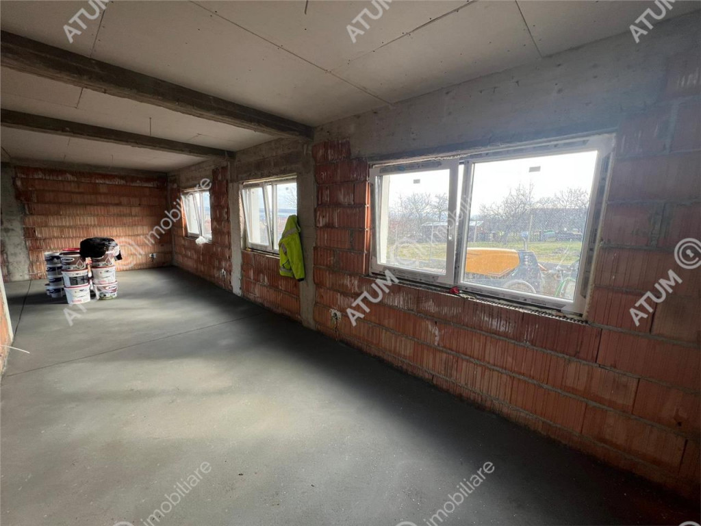 Casa individuala de vanzare cu 4 camere, 2 bai, amplasata pe un teren de 300 mp, situata in centrul localitatii Sura Mica din judetul Sibiu. Locuinta este structurata pe Parter Etaj Pod pentru depozitare si beneficiaza de o suprafata utila de aproximativ 120 mp, compartimentata eficient si modern. La parter, proprietatea dispune de un hol generos la intrare cu spatiu pentru cuier si pantofar, bucatarie cu zona de luat masa si living open space, spatiu luminos si bine organizat, cu posibilitatea de a delimita fiecare zona in functie de preferinte. Tot la acest nivel se regasesc o baie prevazuta cu geam pentru aerisire naturala si o camera tehnica separata, ideala pentru organizarea echipamentelor si spatiilor de depozitare suplimentare. Etajul este compartimentat practic si functional, oferind un dormitor matrimonial cu dressing, doua dormitoare suplimentare, o baie spatioasa prevazuta cu geam si spatiu pentru cada, precum si un hol cu acces catre un balcon tip logie. Accesul spre pod se face prin intermediul unei scari rabatabile, podul fiind ideal pentru depozitare. La exterior, casa se preda la stadiul de cheie, cu izolatie termica si fonica realizata, poarta de acces pietonal si auto montata, precum si pavaj amenajat atat pe caile de acces, cat si in zona destinata parcarii. La interior, imobilul se preda la stadiul de alb, oferind posibilitatea viitorilor proprietari de a-si personaliza finisajele dupa propriul gust. Locuinta este dotata cu centrala termica pe gaz si incalzire in pardoseala atat la parter, cat si la etaj, tamplarie PVC marca Salamander cu 3 foi de sticla pentru un confort termic si fonic superior, iar peretii sunt gletuiti si pregatiti pentru finisajele finale. Valoarea de achizitie a imobilului este de 157.000 euro TVA. Aceasta se poate achizitiona si prin credit bancar. ID intern: 3284.