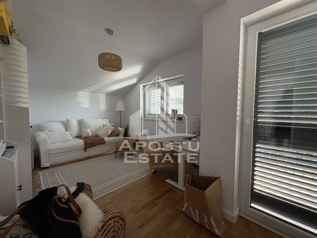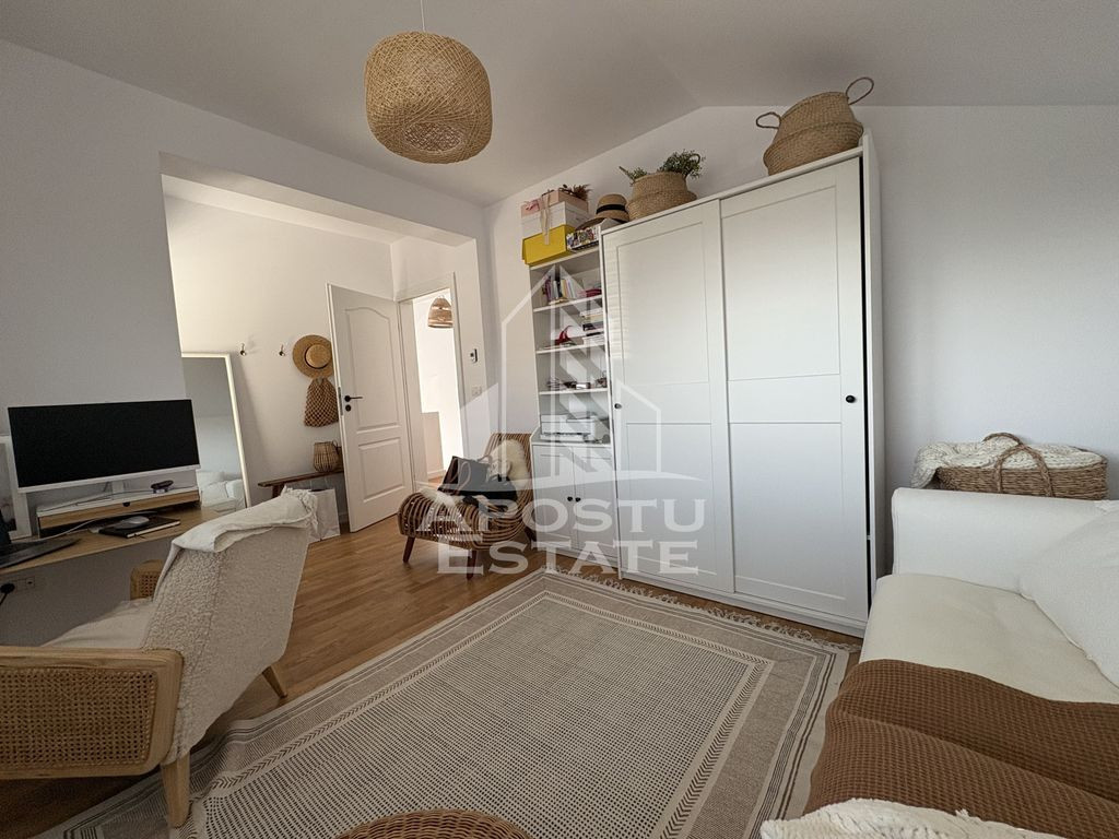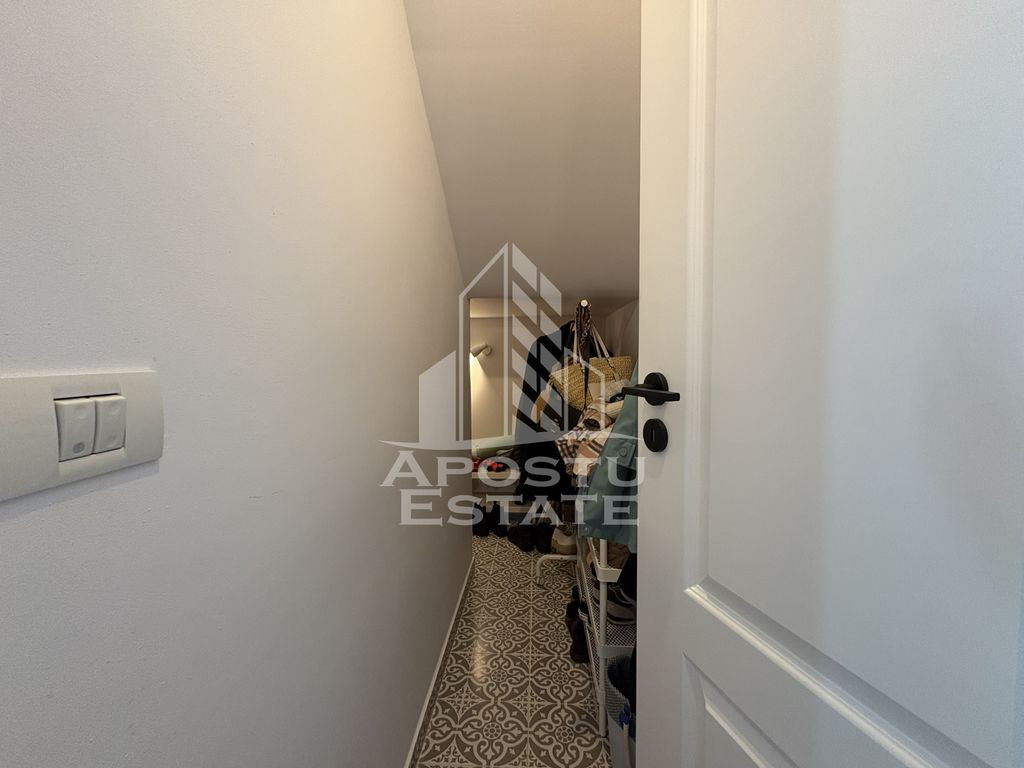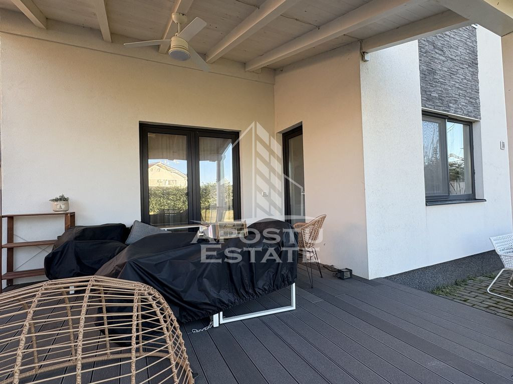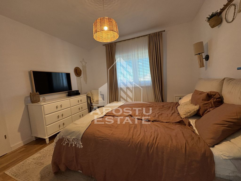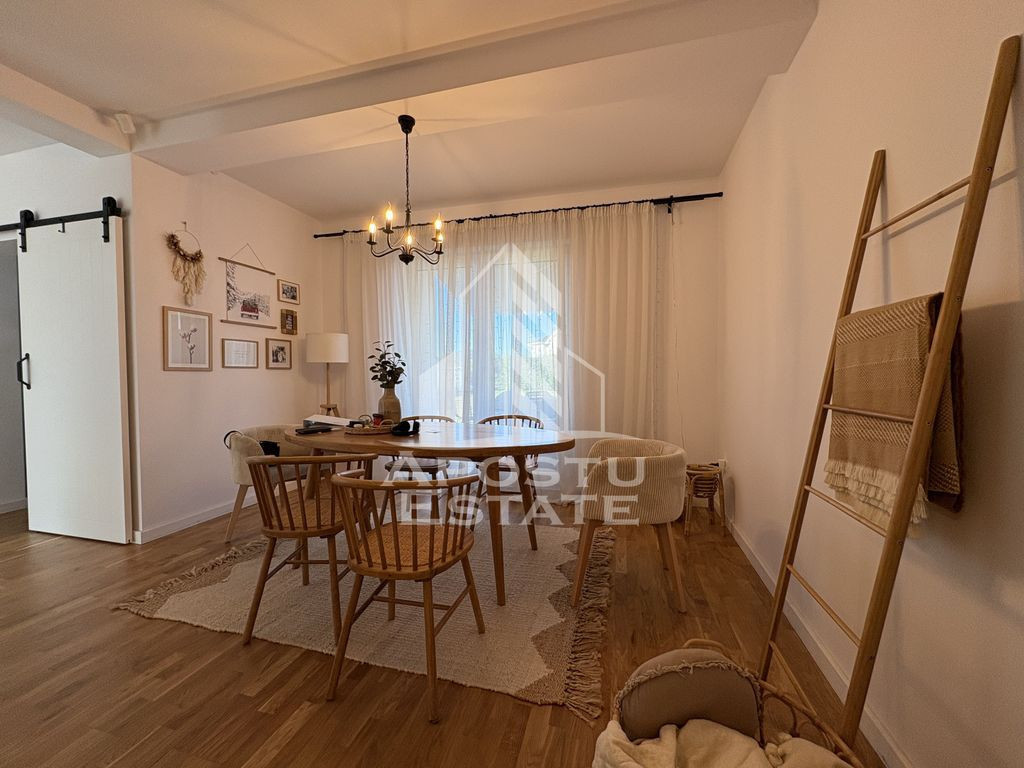 De vanzare – Casa individuala in cartier Serena 2, Mosnita Veche Apostu Estate va propune spre vanzare o casa individuala, situata in cartierul Serena 2, Mosnita Veche. Finalizata in decembrie 2020, aceasta proprietate ofera un spatiu generos si dotari premium, fiind pregatita pentru noii proprietari. Caracteristici principale: • Suprafata utila: 120 mp + terasa si garaj • Suprafata teren: 608 mp • Incalzire in pardoseala • Geamuri tripan cu site si obloane din aluminiu • Termostat de ambient in fiecare camera • Acoperis din tigla de beton, izolatie 10 EPS 80 • Casa se vinde complet mobilata Compartimentare: Parter: • Living spatios • Dining • Bucatarie inchisa cu usa culisanta, iesire pe terasa si camara • Masina de spalat vase, cuptor cu microunde incorporat, plita • Camera tehnica • Baie cu cada • Spatiu de depozitare sub scara Etaj: • 2 dormitoare • 1 dormitor matrimonial cu dressing • Baie cu cabina de dus • Spatiu de depozitare • Acces in pod Dotari si finisaje: • Scari din lemn masiv • Parchet din lemn stratificat la parter • Sistem video cu 8 camere in jurul locuintei • Poarta de acces auto automatizata • Garaj cu usa automatizata • Pavaj in curte, gazon si anexa pentru depozitare • Sistem de irigatii in toata curtea (fata si spate) • Toate utilitatile disponibile (curent monofazic, apa, canalizare, gaz) Proprietatea se remarca prin spatiile sale bine compartimentate si finisajele de calitate superioara, oferind un confort sporit. Pentru mai multe detalii sau pentru a programa o vizionare, va asteptam cu drag!