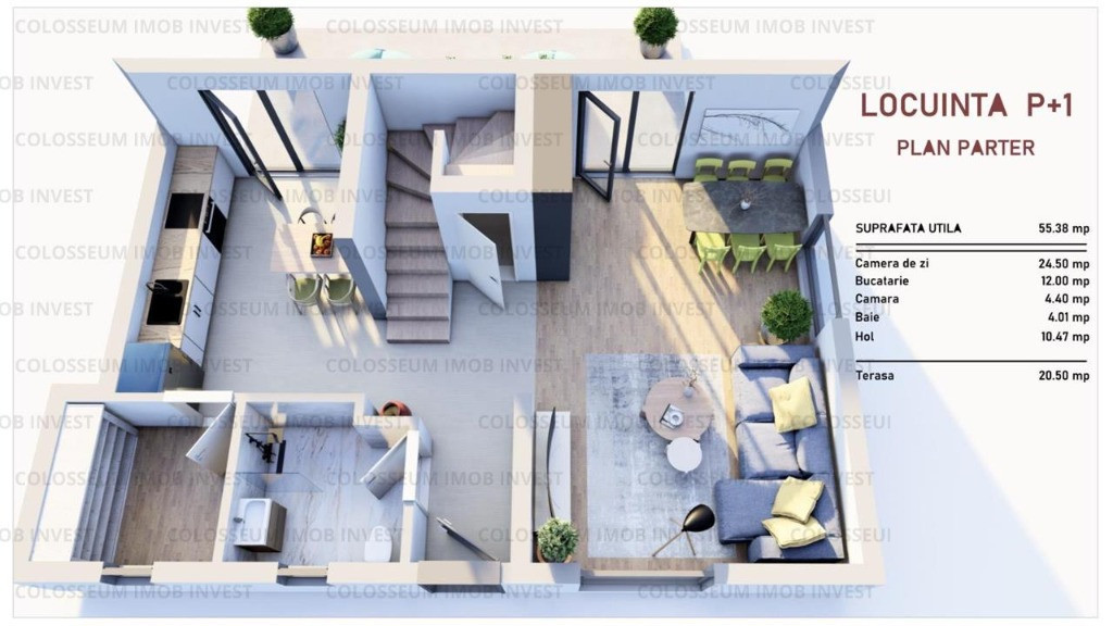 ID intern: 24221 Colosseum Invest va propune spre vanzare casa individuala in zona - Sanpetru, avand 4 camere si 3 bai, cu suprafata utila 127 mp si suprafata teren 300 mp. Compartimentare: Parter - living, bucatarie,camera tehnica si baie+ terasa, iar la Etaj un dormitor matrimonial cu dressing si baie, + 2 dormitoare si o baie. Proprietatea dispune de canalizare, gaz,energie electrica, centrala pe gaz, incalzire in pardoseala si panouri solare, iar pana la finalizare se poate preda cu finisaje la alegere. Pentru clientii interesati de achizitie prin credit, va putem ajuta cu BROKER de credite, fara comisioane sau costuri suplimentare. Site: colosseuminvest.ro