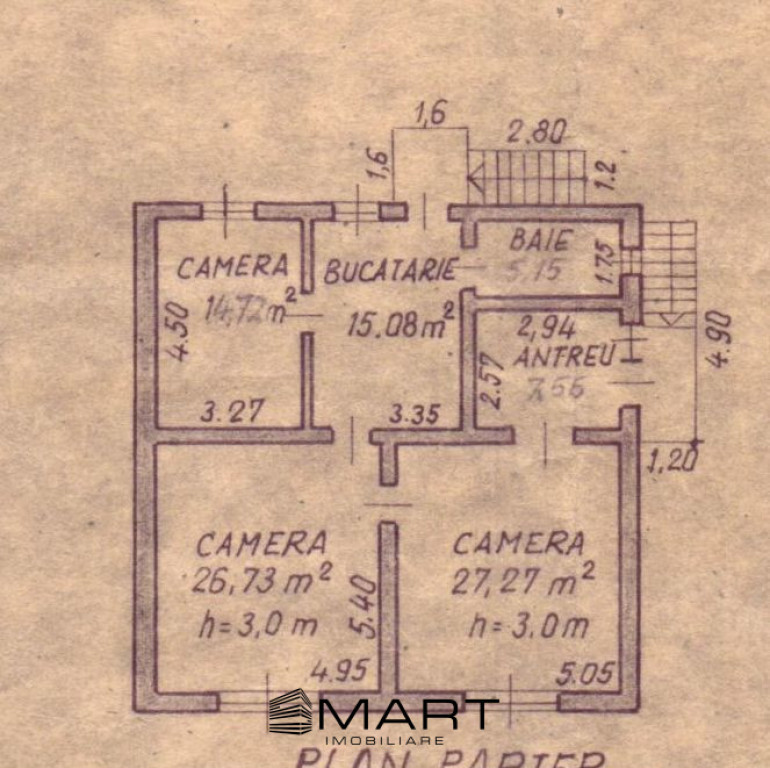 Înălțimea la parter este de 3 m.