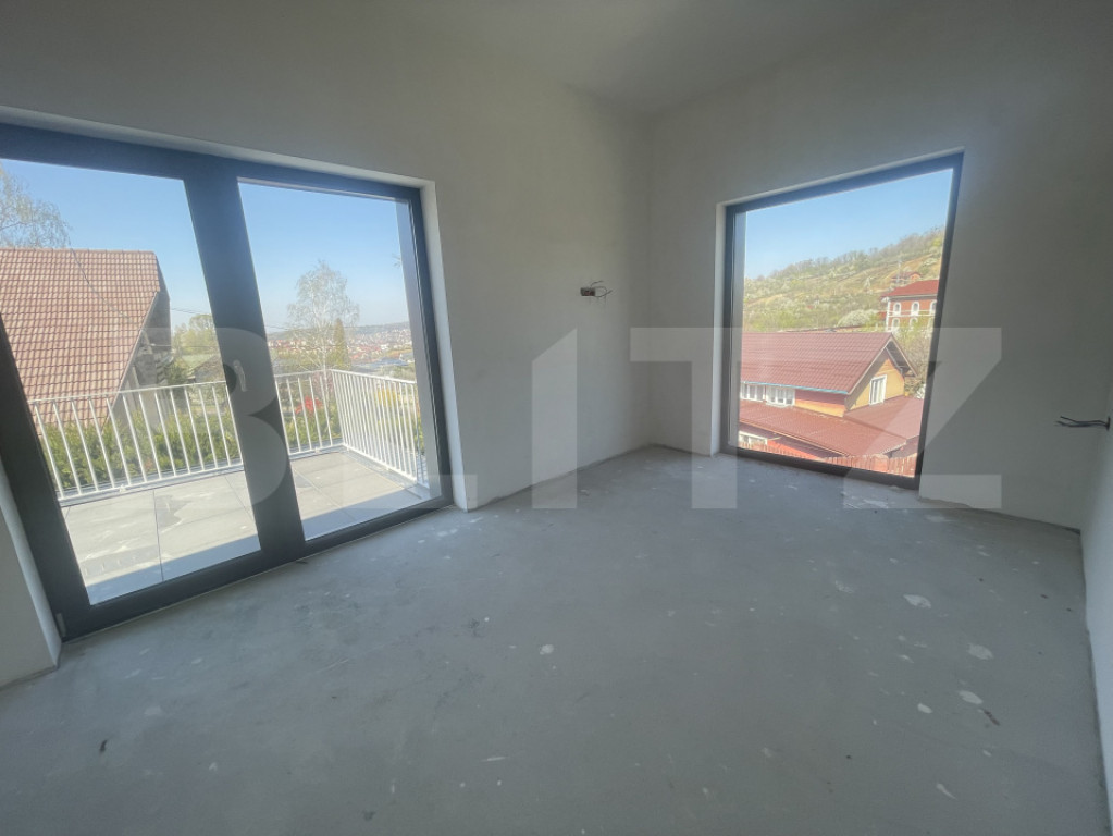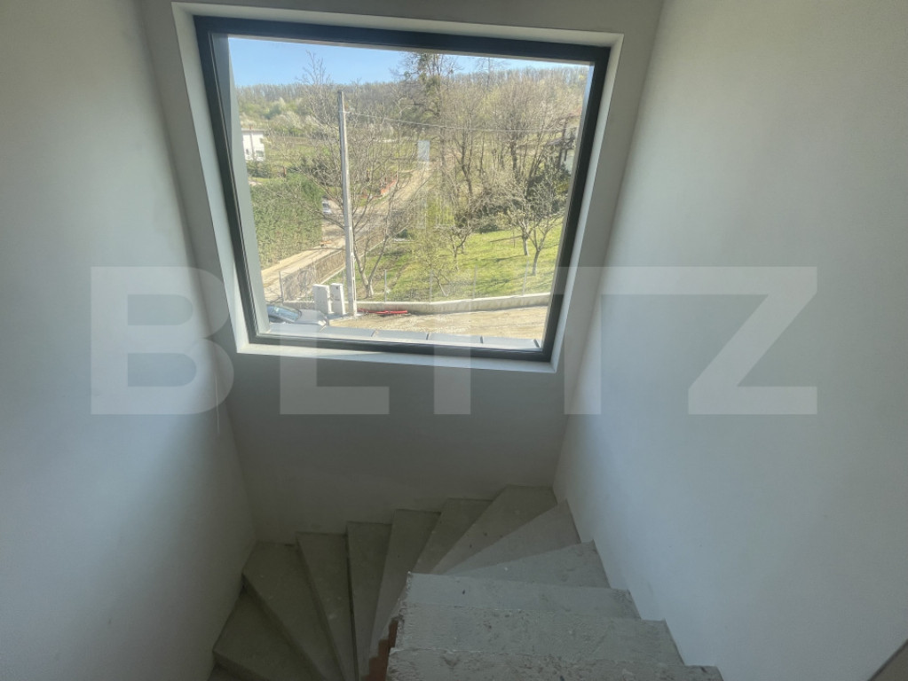 Descoperă o proprietate modernă, cu arhitectură contemporană, situată într-o zonă rezidențială liniștită, ideală pentru cei care își doresc confort, spațiu și intimitate. Casa se remarcă prin designul său elegant, cu linii curate și finisaje exterioare deosebite, îmbinând perfect elementele moderne cu accentele naturale. Se predă la stadiul de semifinisat, oferindu-ți libertatea de a o amenaja exact după propriul gust și stil. Interiorul impresionează prin înălțimea camerelor de 3 metri, care creează un ambient aerisit, luminos și premium. Compartimentarea este gândită eficient, pentru a asigura atât confortul zilnic, cât și funcționalitatea spațiului. Proprietatea dispune de: ???? garaj propriu, pentru siguranța și confortul mașinii tale ???? terasă spațioasă, ideală pentru relaxare sau petrecerea timpului în aer liber ???? curte generoasă, perfectă pentru amenajarea unei zone verzi sau de recreere Poziționarea într-o zonă rezidențială oferă liniște, dar și acces facil către punctele de interes ale orașului. O alegere excelentă pentru cei care caută o locuință modernă, spațioasă și personalizabilă, într-un cadru plăcut și aerisit. Cod ofertă / ID BLITZ: P169118 Id intern: P169118