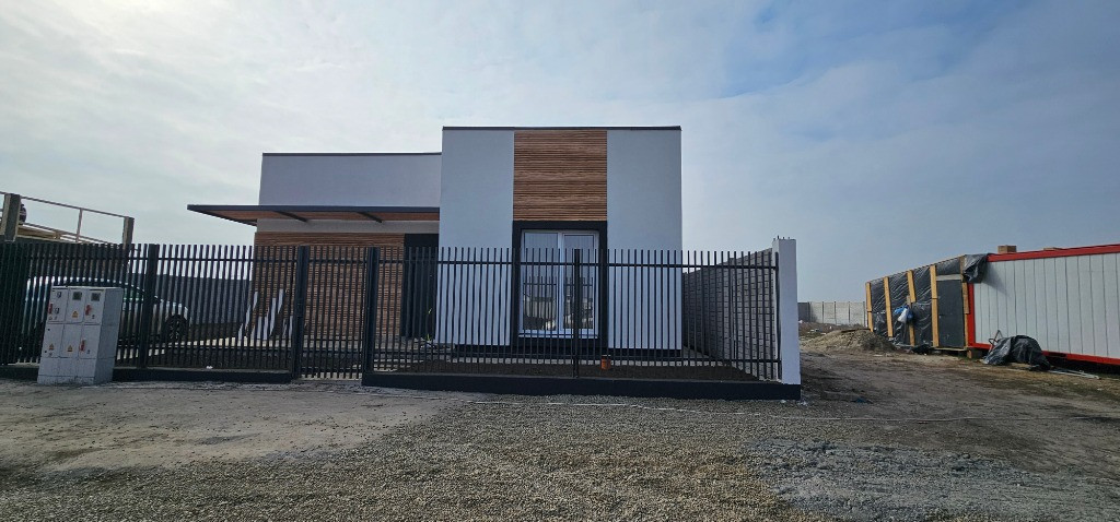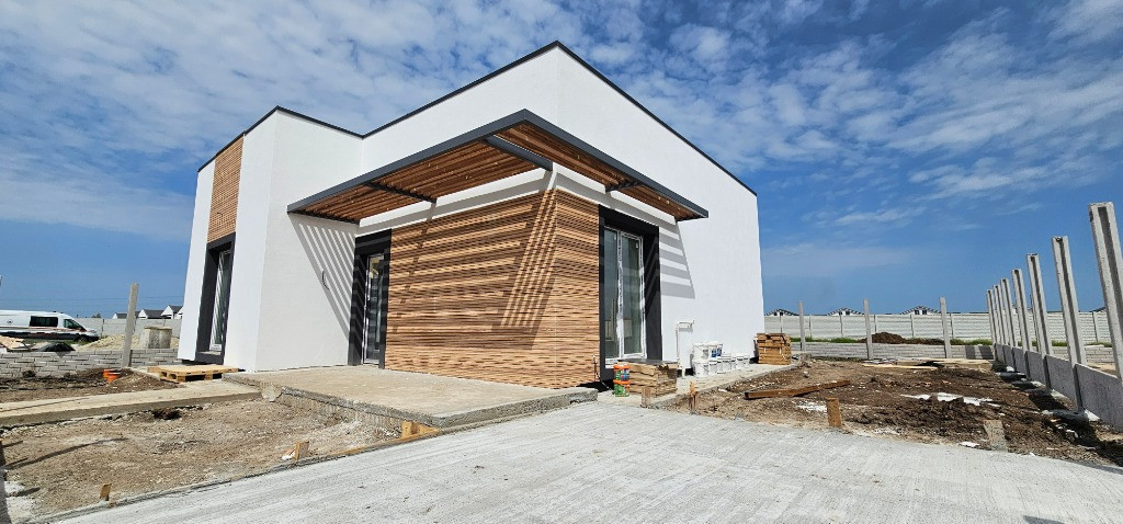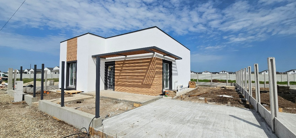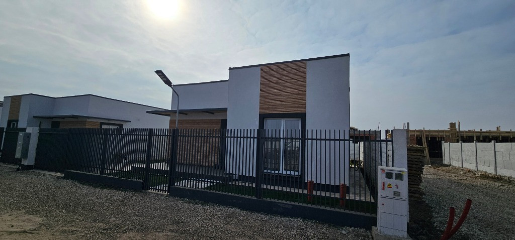 Va propunem spre vanzare o casa individuala pe parter ,situata intr-un ansamblu de locuinte . COMISION 0% PENTRU CUMPARATOR! Casa dispune de un teren în suprafață de 441 mp și o suprafață interioară utilă de 90 mp,fiind compartimentata astfel: PARTER: -Hol 4,98 mp -Living + Bucatarie 24.00 mp -Dormitor 9,36 mp -Grup sanitar 3,70 mp -Dormitor matrimonial 16,52 mp + Grup sanitar 5,00 mp -Dormitor 13,94 mp TERASA 19,90 mp BECI INCALZIRE IN PARDOSEALA PLACA PESTE PARTER POD DE DEPOZITARE Imobilul se vinde la cheie cu finisaje complete: faianta, gresie, parchet, usi interioare si obiecte sanitare . Acesta se preda cu utilitatile zonei : gaz , curent electric , fosa , put cu hidrofor sau pompa submersibila ). - Imobilul poate fi achizitionat atat din surse proprii, cat si prin credit bancar! -Consultanta financiară gratuita ! Pentru a afla toate detaliile care conteaza pentru tine , ai la dispozitie un consultant dedicat , care iti va fi alaturi si te va ghida in a lua o decizie informata . ELENA