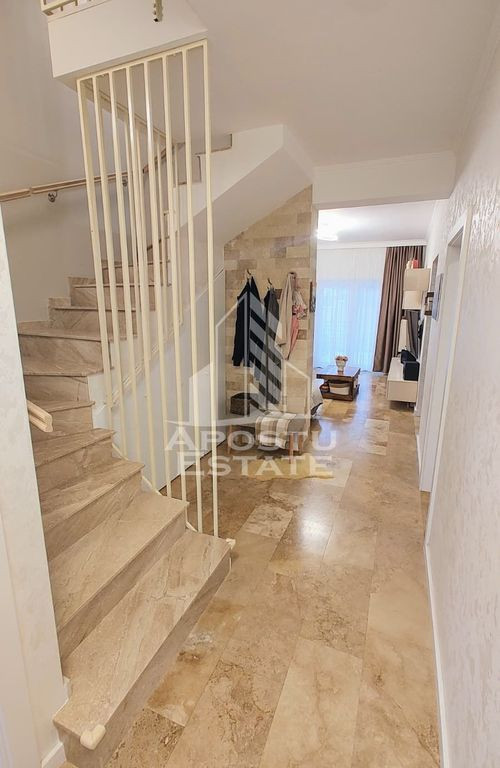 Din portofoliul companiei Apostu Estate, va prezentam cu deosebita placere o casa individuala moderna dedicata iubitorilor de rafinament, situata intr-o zona rezidentiala linistita si selecta din Braytim. Cu o suprafata utila generoasa de 109 aceasta locuinta impresioneaza prin arhitectura contemporana, finisajele premium si compartimentarea inteligenta: Compartimentare: Parter: Hol de acces primitor; Living spatios, luminos, cu acces direct pe terasa ideala pentru momente de relaxare; Bucatarie inchisa, complet echipata, ce imbina functionalitatea cu eleganta; Birou/dormitor versatil, ideal pentru lucrul de acasa sau oaspeti; Dormitor Baie moderna, cu finisaje de calitate. Doua terase Etaj: Dormitor matrimonial generos, cu acces la terasa privata; Doua dormitoare secundare, fiecare cu iesire pe terasa comuna; Doua bai spatioaase, complet utilate; Hol de acces. Dotari si facilitati: Feronerie premium Gresie de designer – eleganta la fiecare pas; Incalzire in pardoseala pentru un confort termic desavarsit; 3 aparate de aer conditionat pentru climat optim in orice sezon; 3 locuri de parcare private; Termostate individuale in fiecare camera – control total al temperaturii. Acces auto Mobilier si electrocasnice: Proprietatea se vinde patial mobilata si utilata, cu piese de mobilier si electrocasnice atent selectionate, de o calitate superioara, menite sa reziste testului timpului si sa ofere un stil de viata confortabil si elegant. Consultanta si finantare: Oferim consultanta imobiliara completa si solutii de finantare personalizate, prin partenerii nostri de incredere. Va invitam cu drag la o vizionare pentru a descoperi personal farmecul acestei proprietati de exceptie – o locuinta ce imbina armonios luxul, functionalitatea si linistea unei comunitati selecte. CP2665349