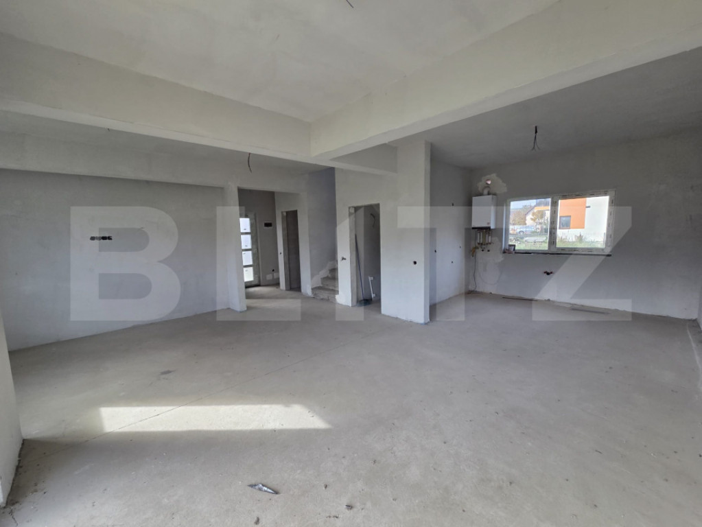litz oferă spre vânzare o casă individuală situată la intrarea în Gilău, dinspre Cluj, într-o zonă exclusiv de case, cu acces direct la drumul național E60. Proprietatea se remarcă prin construcție solidă, compartimentare practică și o curte generoasă, ideală pentru relaxare și familie. ???? Suprafață utilă: 120 mp ???? Teren: 550 mp ???? Parcare: 2 locuri de parcare în curte ???? Compartimentare: Parter: hol de acces baie cameră dining bucătărie + living spațios spațiu de depozitare terasă Etaj: hol 3 dormitoare 2 băi dressing balcon ???? Detalii tehnice: construcție din cărămidă, acoperiș din țiglă izolație termică exterioară geamuri termopan cu tâmplărie PVC încălzire în pardoseală la parter și calorifere la etaj centrala termică inclusă toate utilitățile racordate: curent electric, apă, gaz, canalizare teren împrejmuit și delimitat cu gard ????️ Stadiu de predare: semifinisat – pereți gletuiți, șapă autonivelantă, instalații trase la poziții. ???? Acte: imobil cu CF (Carte Funciară) – se vinde cash sau prin credit. Cod ofertă / ID BLITZ: P155321 Id intern: P155321
