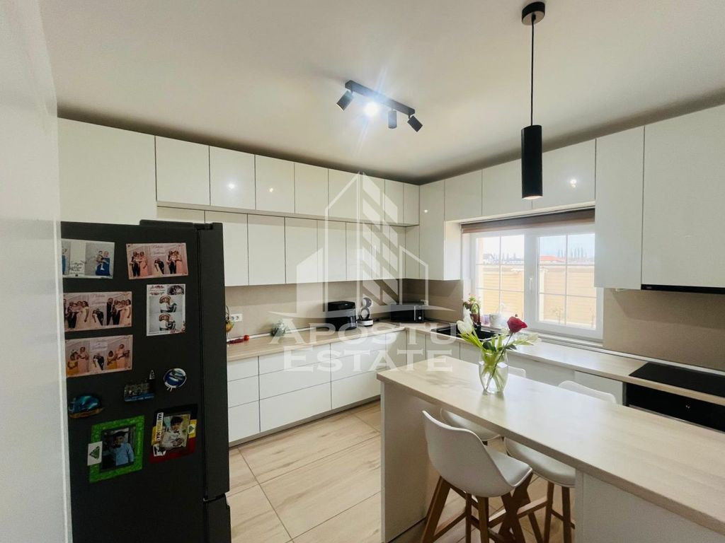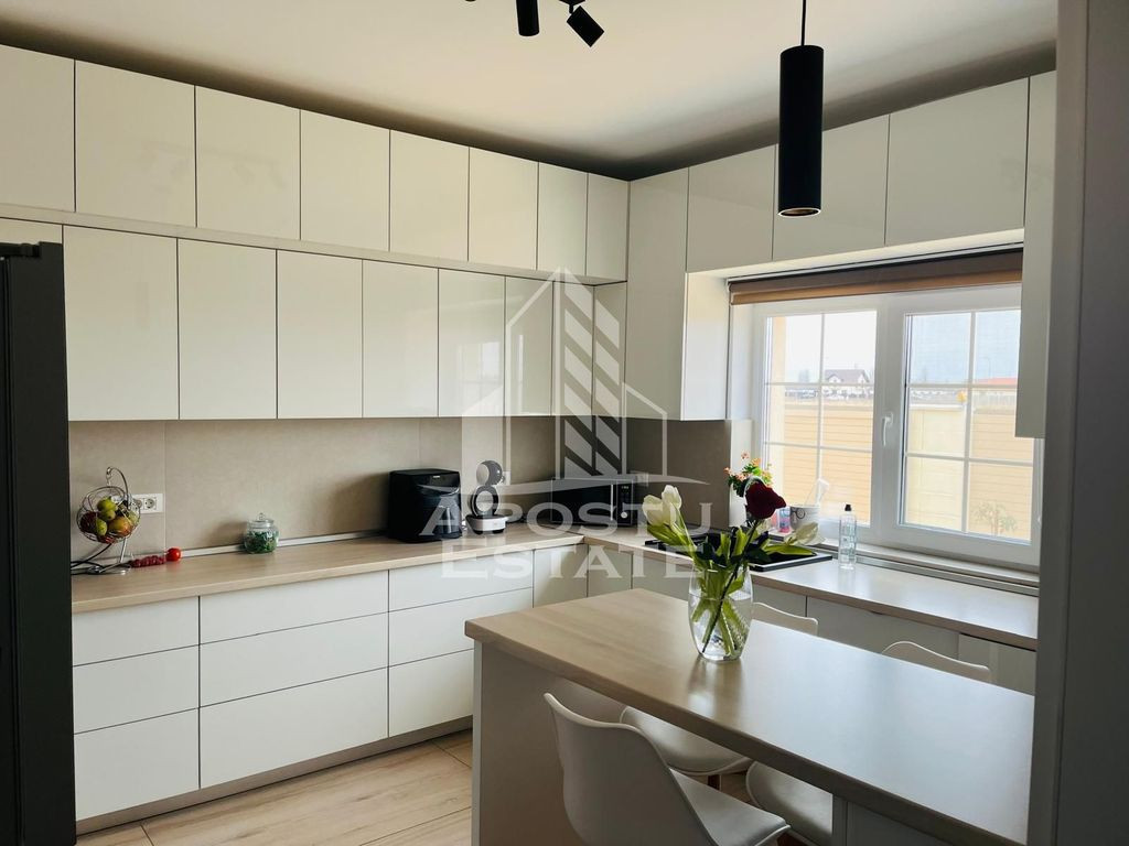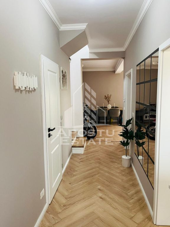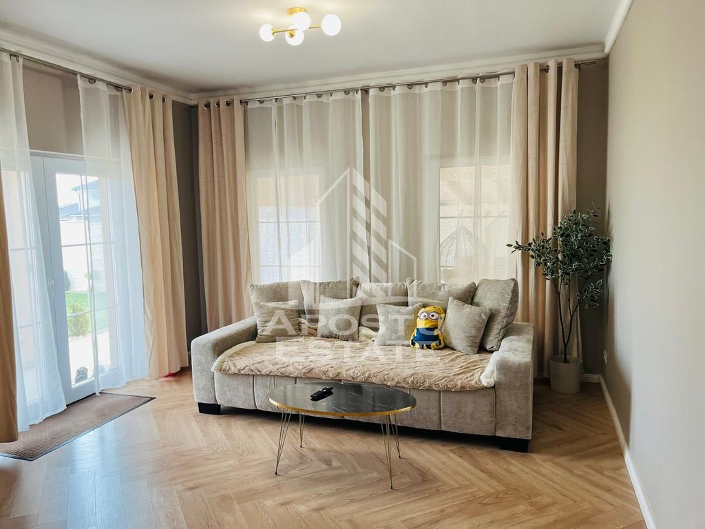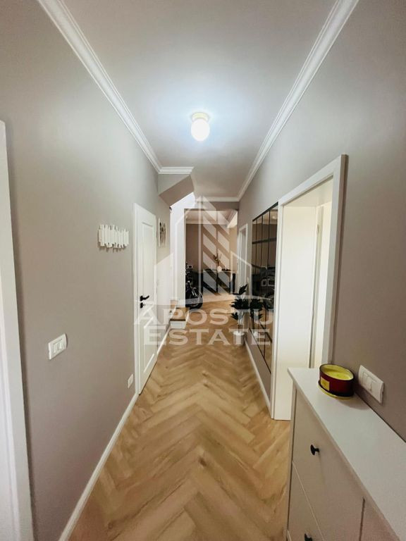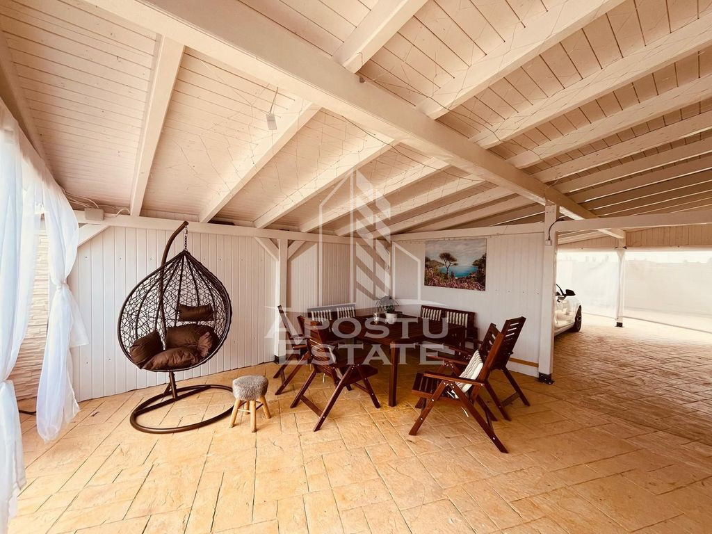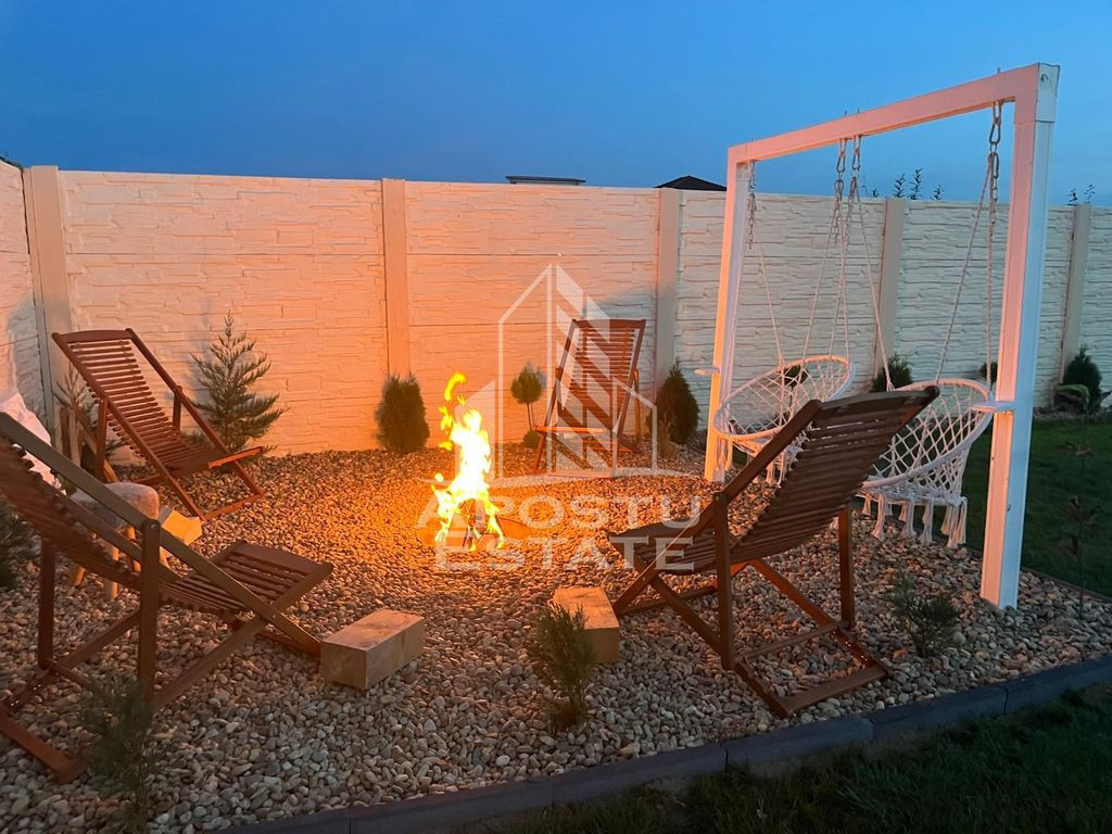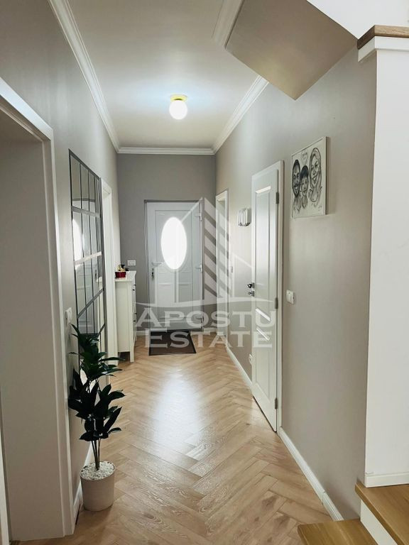 Casa individuala moderna | 5 camere | 2 bai | 136 mp utili | teren 700 mp | foisor 86 mp | garaj dublu | zona linistita, in Sag, la 10 minute de Timisoara. Apostu Estate va ofera spre vanzare o casa individuala deosebita, construita cu atentie la fiecare detaliu, ideala pentru o familie care isi doreste confort, siguranta si calitate. Imobilul are o suprafata utila de 136 mp si este amplasat pe un teren generos de 700 mp, beneficiind de finisaje premium si o compartimentare eficienta. Casa este desfasurata pe doua niveluri si dispune de 5 camere spatioase, 2 bai complet echipate si o zona de zi luminoasa, conectata cu bucataria moderna. Proprietatea este complet mobilata si utilata, fiind gata pentru mutarea imediata. Constructia a fost realizata respectand integral proiectul tehnic si standardele de siguranta, nefiind destinata revanzarii. Caramida este antiseismica, iar izolatia cu vata bazaltica de 10 cm asigura o eficienta energetica excelenta. Detalii constructive si tehnice: Casa este tencuita interior-exterior, cu fundatie pe piatra concasata si placi izolate termic (30 cm la parter, 15 cm intre etaje si 10 cm la pod). Tamplaria PVC Blue Evolution cu geam tripan de 8 cm ofera izolare fonica si termica superioara. Usi interioare Porta Doors, scara din lemn masiv de stejar si finisaje de calitate superioara completeaza designul elegant. Dotari premium: Sistem de incalzire in pardoseala Tece, cu termostat ambiental in fiecare camera – confort termic optim si facturi reduse (maxim 600 lei iarna) Aer conditionat cu WiFi, 24000 BTU Sistem electric trifazat Geviss, cu 3 tablouri independente (parter, etaj, camera tehnica) Statie de filtrare a apei potabile si 3 puturi forate Drenaj pluvial 120 mc Camere de supraveghere si poarta auto automata Foisor generos de 86 mp, complet mobilat si utilat cu TV Garaj pentru doua masini Gradina amenajata cu gazon, flori, pomi fructiferi si sistem de irigare automat Aceasta locuinta a fost gandita pentru confort si eficienta, oferind intimitate si siguranta intr-o zona linistita, aproape de oras. Proprietatea se vinde complet mobilata si utilata, fiind disponibila imediat. Apostu Estate va ofera consultanta bancara gratuita prin intermediul colaboratorilor nostri. Va asteptam cu drag la o vizionare! Disponibil imediat!