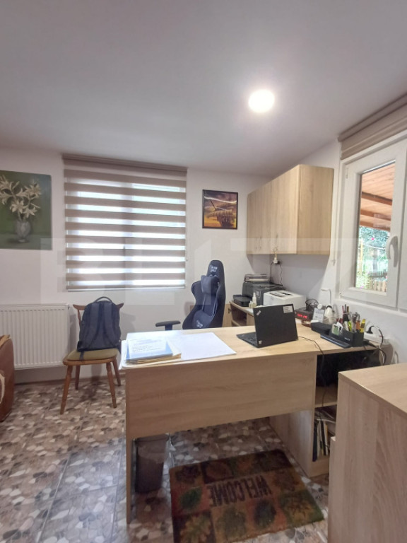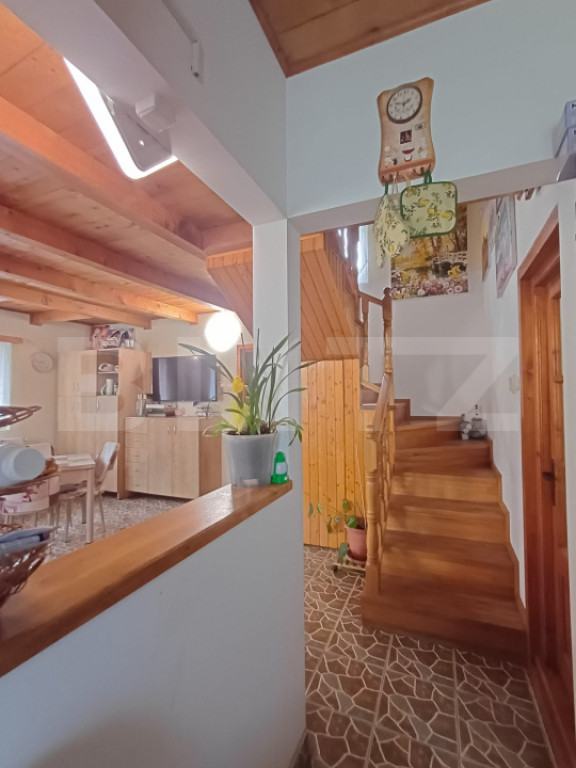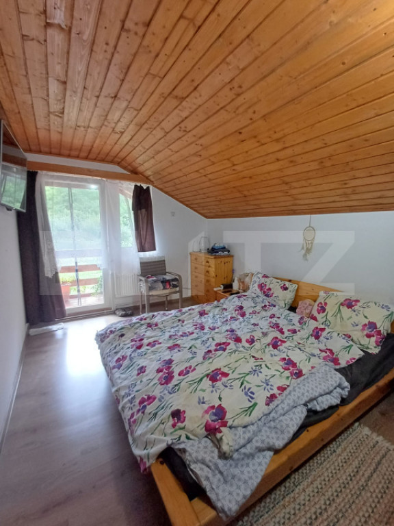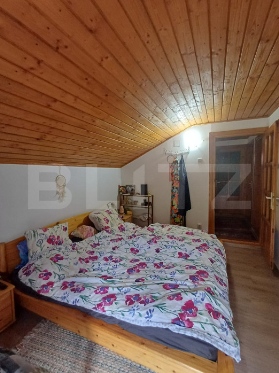 Blitz va ofera spre vanzare o proprietate formata din casa 120 mp utili si teren pe o suprafata de 2800 mp. Casa este construita pe regim P+M si este compartimentată astfel: parter, living cu bucatarie, birou si baie. Tot la parter avem si camera tehnica si camafra cu coborare in beci de circa 8 mp. La mansarda avem 3 dormitoare si un deressing care poate fi transformat in baie. Doua camere au iesire pe balcon. La parter avem o terasa de circa 17 mp acoperita cu lambriu si tabla. Exista si o bucatarie de vara cu cuptor de paine, gril, soba cizma, aragaz si chiuveta cu apa curenta rece si calda. Ca si anexe avem doua magazii, din care una pentru depozitat lemne si un atelier. Casa este construita pe fundatie din beton armat si structura de lemn. Este izolata pe interior cu vata minerala si placata cu rigips. Acoperisul este din tigla, izolat cu vata minerala. Podul este de asemenea izolat cu vata si podit cu scandura. Utilitati: fosa septica, curent, apa din panza freatica cu hidrofor, incalzirea cu calorifere cu cazan pe lemne, pufer automatizare, boiler pentru apa calda cu dubla sursa de incalzire, pe lemne si electric. Intrarea in curte se face pe o alee privata care apartine de proprietate. Este pavata partial, pe restul terenului fiind gazon si livada cu pomi fructiferi. Gradina cu flori si zona de relax. Casa este dotata cu sistem de supraveghere video, internet, poarta pe sina cu automatizare electrica. Proprietatea este imprejmiuta cu gard de plasa cu stalpi metalici incastrati in beton. Aceasta proprietate se afla într-o zonă superbă in continua dezvoltare cu posibilitatea de transformare în pensiune turistică. Pentru detalii suplimentare si organizarea unei eventuale vizionari va asteptam sa ne contactati! Cod ofertă / ID BLITZ: P151481 Id intern: P151481