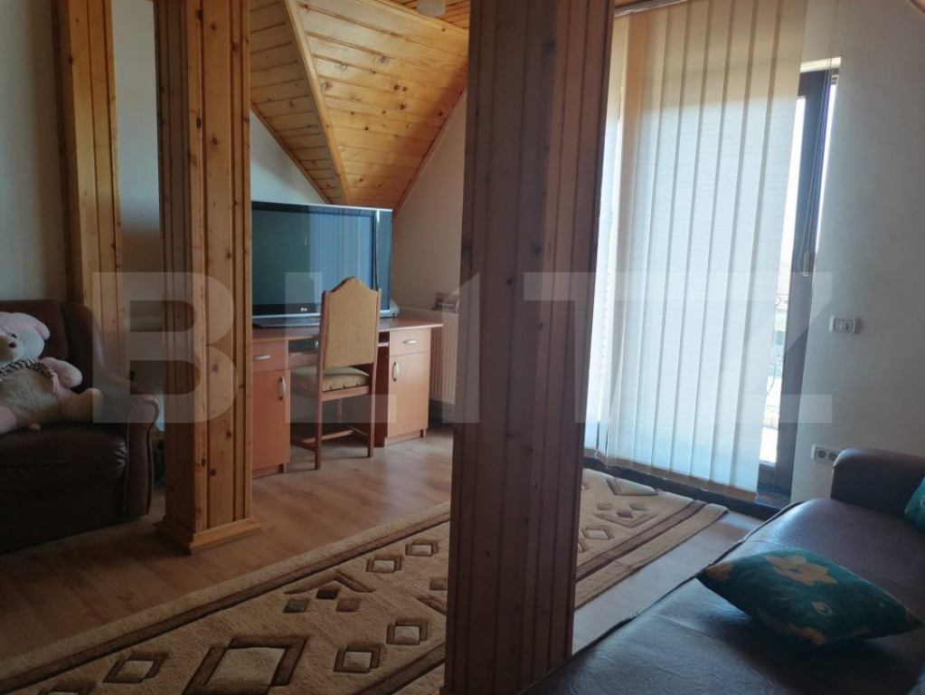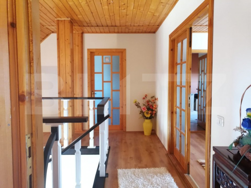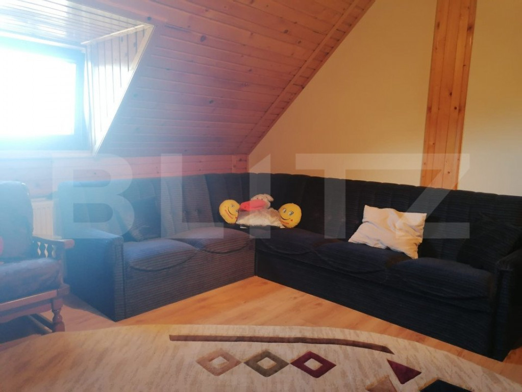 Această locuință include un living primitor, un loc de luat masa, 1 bucătărie, 3 dormitoare, precum și spații de locuit la mansardă. De asemenea, beneficiați de 3 băi, anexe și spatii de depozitare. Curtea frumos amenajată oferă pavaje, spații verzi, plante decorative, zona de barbecue, o terasă amenajată, un garaj și o grădină de legume. O proprietate completă, ce îmbină confortul și utilitatea într-un cadru natural plăcut! Cod ofertă / ID BLITZ: P131511 Id intern: P131511