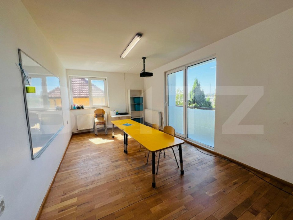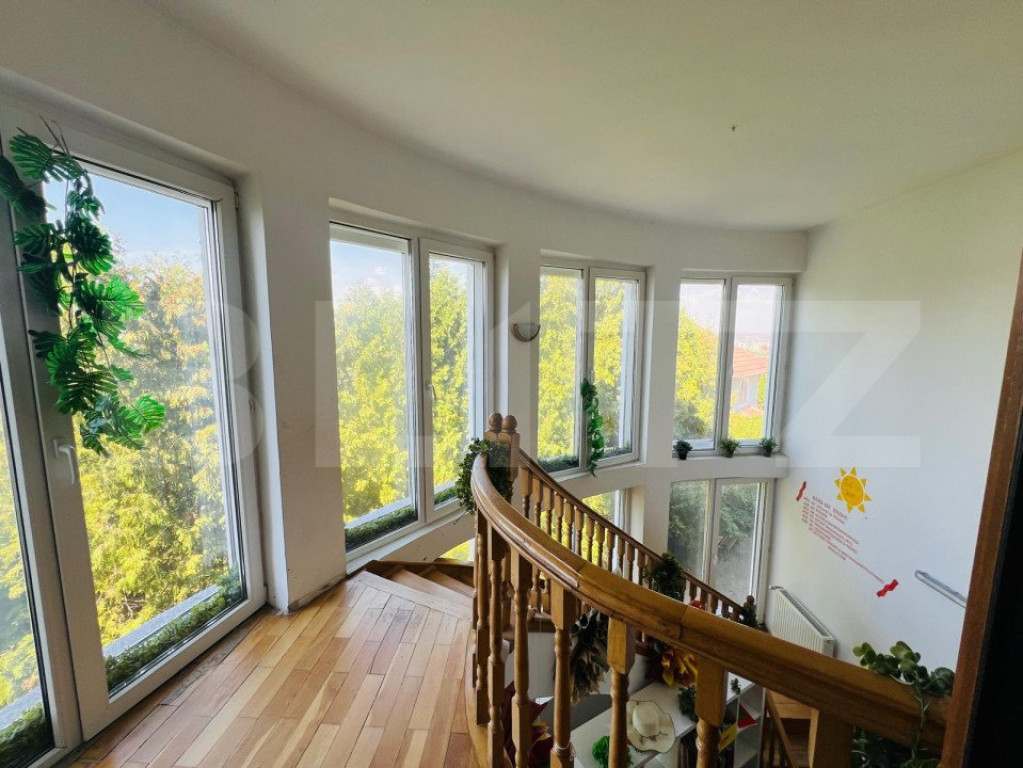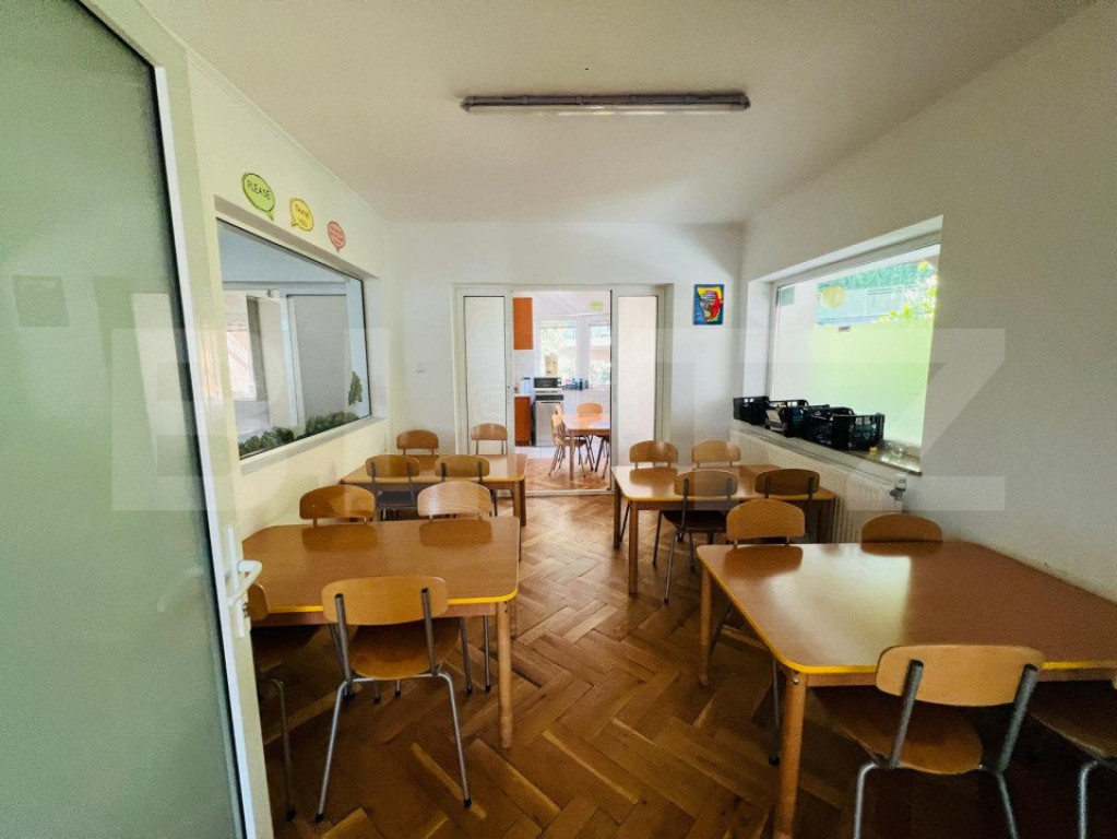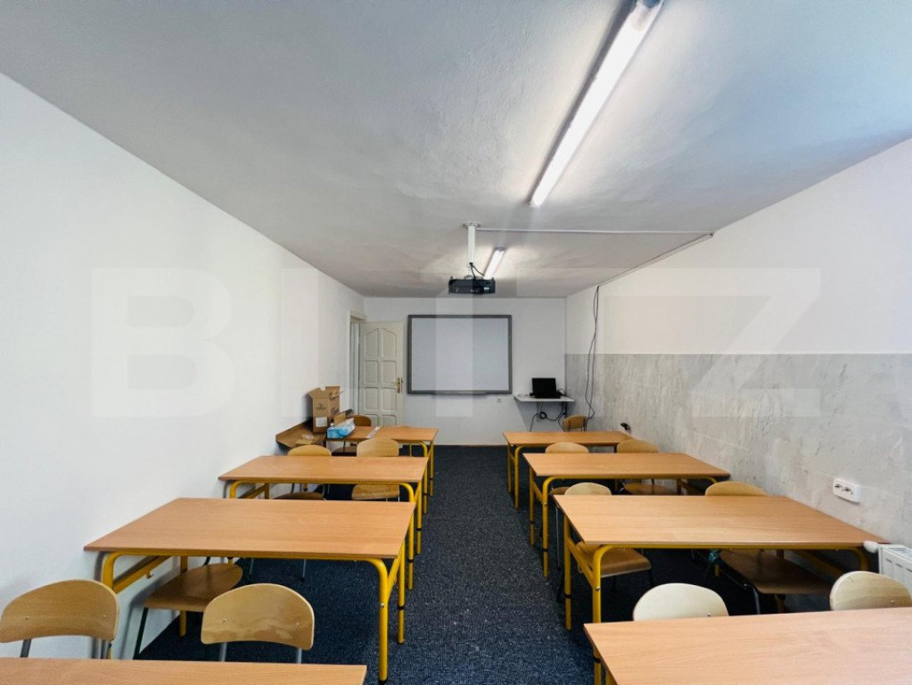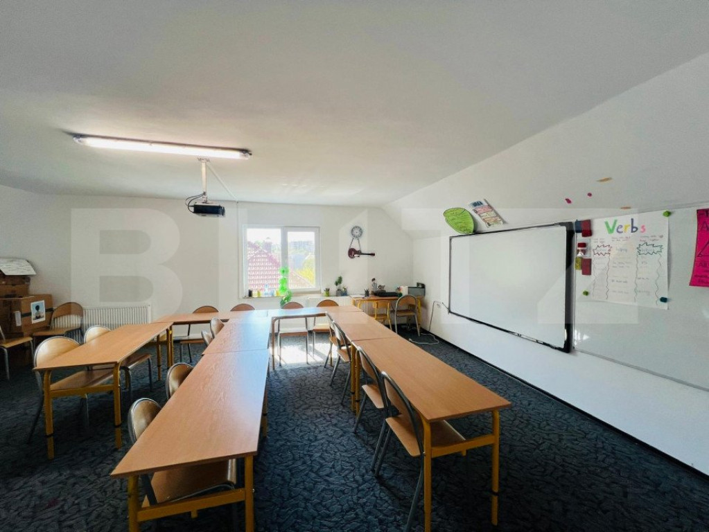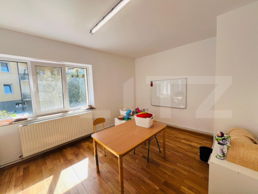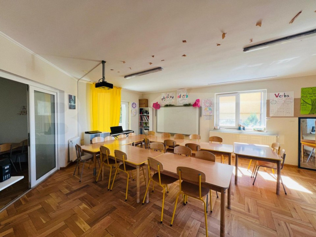 Va propun spre inchiriere casa individuala in zona Grand Hotel Italia, zona de top a Clujului. Aceasta a functionat ca si scoala privata si a fost adaptata ca atare. Casa este desfasurata astfel: - demisol: garaj, camera tehnica, bucatarie, spatiu de depozitare, baie - parter: living open space, spatiu de luat masa, bucatarie, o incapere decomandata, baie, hol -etaj 1: 4 camere, baie, hol -mansarda: 3 camere,baie, hol, terasa. Casa dispune de garaj incalzit , spalatorie , spatiu tehnic, sala de sport, 3 terase si ofera o panorama deosebita asupra orasului ! Casa are o curte generoasa cu spatiu verde si posibilitate de parcare a 10 masini. Imobilul are 3 accese separate si este amplasat pe un drum de servitute, astfel nefiind necesar acordul vecinilor pentru desfasurarea activitatii. Cod ofertă / ID BLITZ: P123754 Id intern: P123754