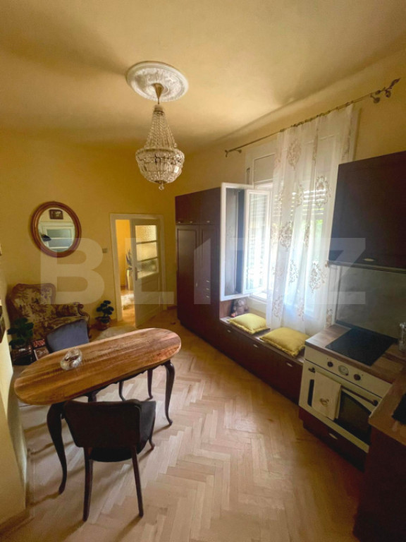 Blitz vă propune o casă care te așteaptă să-i continui povestea Într-o zonă bine conectată a Timișoarei, ascunsă discret între case și blocuri, se află o proprietate care nu se impune prin mărime, ci prin atmosferă. O casă construită în anii ’70, cu volume atipice și camere înalte de 3 metri, care păstrează farmecul unei epoci în care lucrurile erau făcute temeinic, cu răbdare. De cum pășești în antreul generos, simți liniștea. Este acel spațiu de tranziție care te desprinde de agitația orașului și te introduce, pas cu pas, în ritmul casei. Lemnul parchetului masiv, ușile originale și tâmplăria din lemn spun o poveste veche, atent păstrată și completată în 2024 cu tot ce înseamnă confortul de azi: instalații noi, izolație exterioară, acoperiș refăcut, centrală pe gaz. O casă care a fost iubită și îngrijită, nu doar renovată. Casa principală se desfășoară armonios și cuprinde un antreu generos, două camere luminoase, o bucătărie și o baie. Spațiile sunt echilibrate, ușor de locuit, iar înălțimea de 3 metri a camerelor amplifică senzația de aerisit și lumină, oferind libertate în amenajare și un confort greu de replicat în construcțiile noi. Extensia adaugă o lume a ei: o cameră cu chicinetă și baie proprie, perfectă pentru oaspeți, un adolescent sau un birou de acasă. De aici cobori în demisol, unde două încăperi au devenit loc pentru mișcare, liniște și organizare – astăzi zonă de sport și dressing, mâine orice îți dorești tu. Casa se deschide spre două curți, fiecare cu rolul ei. În față, un spațiu amenajat, primitor, care te întâmpină. În spate, pământul liber, gata să fie transformat în gazon, grădină sau colț de relaxare. Acum este locul de joacă al celor doi patrupezi ai familiei – dovadă că această casă a fost trăită, nu doar locuită. Cu două fronturi stradale, acces auto și zone de relaxare în aer liber, proprietatea oferă ceva rar: intimitate în mijlocul orașului. Ești aproape de școli, grădinițe, piețe și mijloace de transport, dar odată ce porțile se închid, rămâi doar tu și liniștea ta. Cu o suprafață locuibilă de 81 mp și un teren de 320 mp, această casă este despre echilibru. Despre dimensiuni decente, ușor de întreținut, despre un spațiu cald, frumos amenajat și complet utilat, gata să devină acasă. Poate nu cauți doar o casă. Poate cauți un loc care să te aștepte seara. Dacă simți că aceasta ar putea fi povestea ta, te invit la vizionare. Cod ofertă / ID BLITZ: P161450 Id intern: P161450