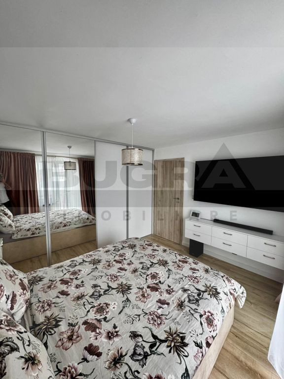 Bugra Imobiliare ofera spre vanzare o casa individuala, situata in Campenesti, la 30 de minute distanta de centrul orasului. Detalii tehnice: Parter: 84 mp utili Mansardă: 60 mp utili izolată termic, pregătită pentru amenajare (poți face 2 camere + baie) Pivniță (demisol): 24 mp utili perfectă pentru depozitare, cameră tehnică sau sală de fitness Teren: 300 mp Balcon mare de 7,5 mp, închis cu termopan Compartimentare ideală: living spațios, bucătărie complet utilată, baie cu geam, 2 dormitoare (matrimonial cu balcon), garderobă Exterior & curte: Foișor amenajat pentru relaxare Curte cu pavaj + mobilier de grădină inclus Locuri de parcare private Gard și poartă solide pentru intimitate și siguranță Dotări & confort: Geamuri TRIPAN (6 mm) izolație fonică și termică superioară Centrală pe peleți economică și eficientă Gaz tras până la casă proiect finalizat, conductă activă Fântână proprie cu apă de izvor 2 aparate de aer condiționat Mobilier premium la comandă în toată casa Electrocasnice incluse: plită + cuptor electric, cuptor microunde, mașină spălat rufe + uscător, mașină spălat vase, frigider, televizoare, mobilier de grădină Avantaje: TOTUL este nou fără investiții suplimentare Mansardă de 60 mp gata pentru amenajare Gaz tras până la casă Pivniță de 24 mp pentru depozitare sau hobby Zonă liniștită, aer curat, acces rapid către Cluj Va astepta la vizionari!