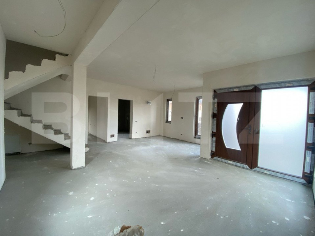 Blitz vă propune spre vanzare o casă recent finalizată, situată într-o zonă liniștită de case din Câmpenești. Construită pe un teren de 300 mp, această locuință are o suprafață totală construită de 145 mp, fiind ideală pentru o familie care își dorește confort și intimitate. Caracteristici principale: ✅ Regim de înălțime: Parter + Etaj ✅ Compartimentare inteligentă: Parter: Living generos cu suprafețe vitrate mari, bucătărie separată, baie. Etaj: 3 dormitoare (unul cu balcon), baie spațioasă, dressing și un al doilea balcon. Pod: Spațiu suplimentar pentru depozitare. ✅ Utilități racordate: Apă, gaz, curent, canalizare. ✅ Încălzire: În pardoseală, centrală termică inclusă și montată la momentul vânzării pentru a beneficia de garanție. ✅ Izolație termică: Polistiren ESP 100 de 10 cm, tâmplărie cu 3 foi de sticlă pentru eficiență energetică sporită. ✅ Luminozitate: Suprafețe vitrate mari care permit pătrunderea naturală a luminii. ✅ Stadiu de predare: Semifinisat (strat de glet aplicat). O proprietate bine compartimentată, situată într-o zonă aerisită și liniștită – ideală pentru cei care își doresc confortul unei case noi, cu un teren propriu și acces facil la utilități. Pentru mai multe detalii sau pentru a programa o vizionare, nu ezitați să ne contactați! Cod ofertă / ID BLITZ: P142071 Id intern: P142071