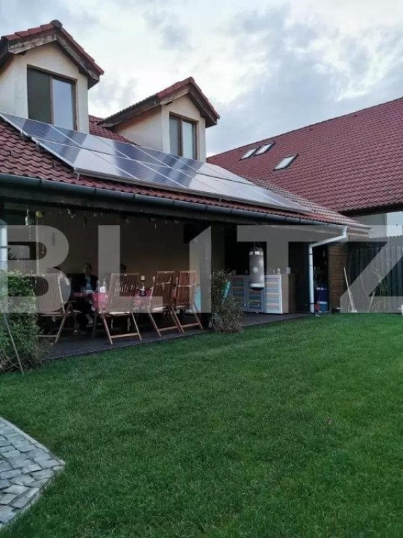 Blitz va propune spre vanzare o casa individuala in Selimbar, modern utilata si mobilata situata intr-o zona linistita si ferita de agitatia din oras. Casa dispune de 3 dormitoare, living, bucatarie, 2 bai, camera tehnica, spatii de depozitare exterioare, terasa acoperita de 30 mp cu loc de luat masa, zona amenajata de gratar, piscina exterioara si carport. Terenul are o suprafata de 430 mp. Gradina amenajata dispune de multa verdeata. Regimul de inaltime al casei este: P+M Avantaje: - Zona linistita cu o priveliste frumoasa asupra muntilor - Zona pavata cu carport pentru 2 locuri de parcare) - Curte libera cu o zona verde generoasa - Terasa cu suprafata de 30 mp cu loc de luat masa - Zona amenajata de gratar - Mobilata si utilata modern - Constructie noua - Teren cu suprafata de 430 mp. Casa dispune de sistem de supraveghere video, alarma si panouri foto-voltaice productie energie electrica. Cod ofertă / ID BLITZ: P7591 Id intern: P7591