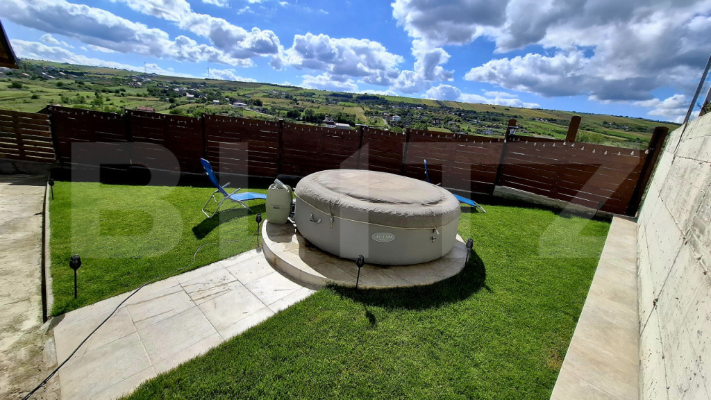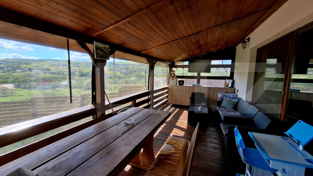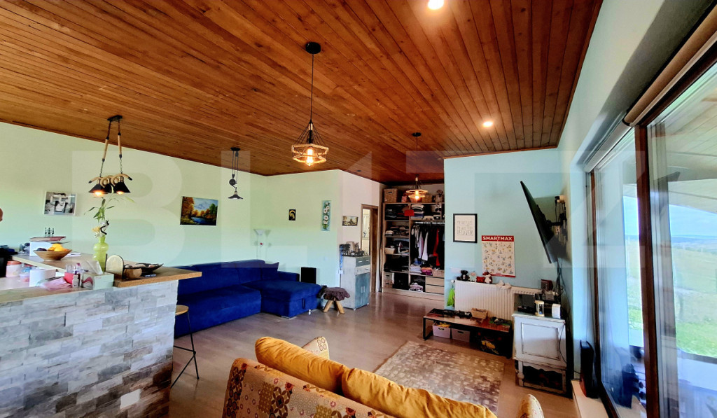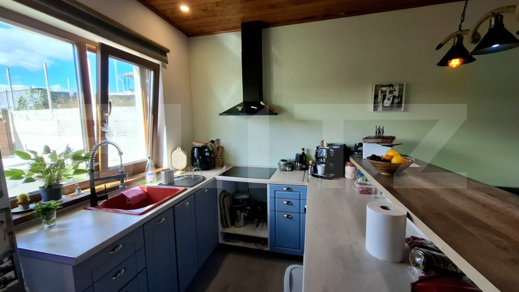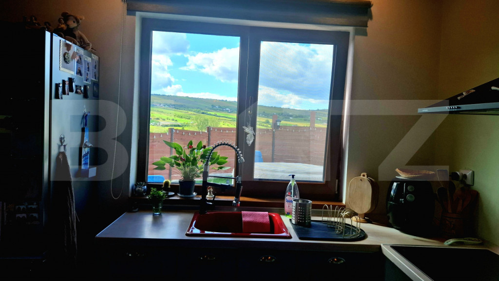 Blitz vă propune spre vânzare o căsuță cochetă, situata in apropierea rezervatiei naturale Fanatele Clujului. Este alegerea ideală pentru cei care caută liniște și vor să evadeze din agitația urbană. Casa este situată într-o zonă retrasă și oferă o priveliște spectaculoasă asupra împrejurimilor. Proprietatea este perfectă pentru relaxare și reconectare cu natura. Locuința are o suprafață utilă de 57 mp, fiind organizată pe un singur nivel. Avem un living spațios cu bucătărie open space , un hol cu dressing si baie. Terasa generoasa de 18mp este ideala pentru relaxare .In curte mai avem o magazie pentru unelte. Se vinde finisata,mobilata modern si utilata cu aer conditionat si sistem de supraveghere video Terenul este extravilan si are suprafață de 696mp, oferind spațiu suficient pentru piscina,parcare si zona verde. Casa dispune de acoperiș din tablă și izolație exterioară de 15cm. Încălzirea se face cu o centrală pe peleți,dispune de bransament la curent si la apa. Această locuință este ideală pentru un stil de viață liniștit, aproape de natură, dar în același timp într-o zonă bine poziționată. Casă se poate achiziționa doar cu surse proprii, nu se poate cu credit. Cod ofertă / ID BLITZ: P153440 Id intern: P153440