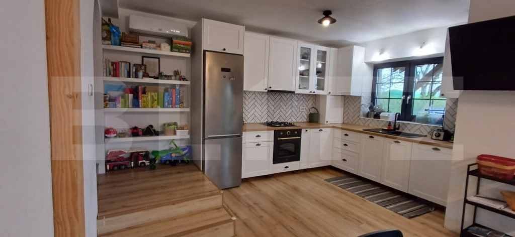 Blitz va ofera spre vânzare o casă individuală situată în Jucu de Mijloc, ideală pentru cei care își doresc liniște, spațiu și confort, dar și acces rapid către oraș. Proprietatea dispune de o suprafață utilă de aproximativ 105 mp și este amplasată pe un teren generos de 1050 mp, cu un front stradal de 20 ml, oferind multiple posibilități de amenajare exterioară. Casa este construită din cărămidă, izolată exterior (15cm) și acoperită cu țiglă, ceea ce asigură un bun confort termic pe tot parcursul anului. Compartimentarea este eficient gândită, fiind dispusă pe parter și incluzând un living luminos cu bucătărie open-space și zonă de dining, hol, cămară, birou, un dormitor, o baie, iar al doilea dormitor beneficiază de baie proprie și dressing. În plus, terasa spațioasă de 31 mp este perfectă pentru relaxare sau petrecerea timpului în aer liber. Casa se predă complet mobilată și utilată, exact ca în prezentare, fiind pregătită pentru mutare imediată. Printre dotări se regăsesc centrală termică pe gaz, geamuri termopan cu profil PVC, precum și finisaje moderne precum gresie și parchet laminat, toate contribuind la un ambient plăcut și confortabil. Utilitățile sunt complete: apă, gaz, curent monofazic și trifazic, canalizare. Această proprietate reprezintă alegerea ideală pentru o familie care caută confort, spațiu și o locuință gata de locuit într-o zonă în plină dezvoltare. Cod ofertă / ID BLITZ: P170261 Id intern: P170261