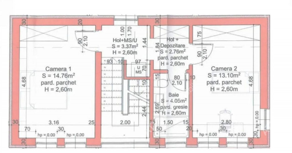 Va oferim spre vanzare o casa cu 3 camere nou construita, compusa din Parter Etaj Pod, situata in Sibiu zona Gusterita, amplasata pe un teren de 313 mp, cu amprenta de 65 mp si o curte libera de 248 mp. Suprafata utila ca locuintei este de 93 de mp si este compartimentata astfel: la parter avem living 20.38 mp, bucatarie inchisa 14.76 mp, hol de acces cu spatiu pentru cuier si pantofar 4.47 mp, baie 2.30 mp si hol cs in suprafata de 12.85 mp. Etajul este compus din doua dormitoare din care unul pentru oaspeti/copii de 13.10 mp si un al doilea dormitor matrimonial in suprafata de 14.76 mp, o baie de 4.05 mp si hol cu spatiu depozitare 6.13 mp. Separat de suprafata utila imobilul dispune de un pod situata pe intreaga suprafata a etajului, accesibil din interior prin intermediul unei scari rabatabile. Podul are o inaltime maxima de 3 m la coama si poate fi utilizat ca spatiu pentru depozitare. Casa este construita pe structura de beton cu pereti din caramida, acoperis din tigla cu folie anticondens si osb, la exterior aceasta este placata cu termosistem din polistiren de 10 cm EPS 80 si finisat cu vopsea decorativa. Tamplaria casei este din PVC marca Rehau cu 5 camere si 3 foi de sticla. La interior se preda la stadiul de alb cu urmatoarele finisaje si dotari: incalzire prin pardoseala parter si etaj cu centrala termica proprie, pereti tencuiti, gletuiti si zugraviti in lavabila alba, sape elicopterizate, intalatii electrice trase pe pozitie cu tablou electric general si sigurante individuale si instalatii sanitare trase pe pozitie. Casa poate fi finalizata la stadiul de cheie, contra cost, utilizand materiale si un buget stabilit de dumneavoastra. Valoarea de achizitie a acestei case este de 240.000 euro. ID intern: 2589.