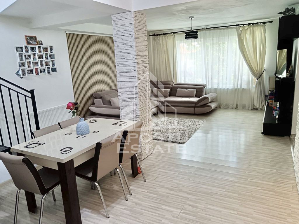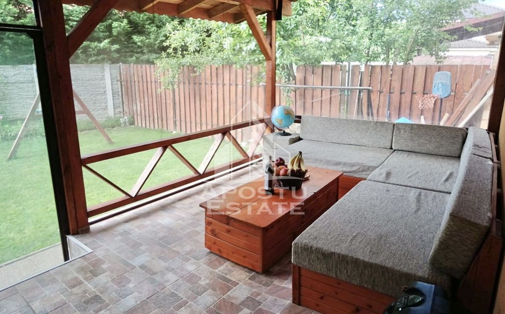 APOSTU ESTATE va propune spre vanzare o casa Individuala situata in Giroc. Locatia imobilului se potriveste perfect celor ce isi doresc sa se detaseze de agitatia orasului. In apropiere sunt magazine si supermarket-uri precum Profi, Mega Image, scoala si gradinita la o distanta de 3 minute, acces facil la mijloace de transport in comun. Proprietatea se intinde pe un teren de 260 mp. Imobilul dispune de 105 mp utili + terasa amenajata de 25 mp si este compartimentat astfel: Parter: - hol acces. - living. - bucatarie inchisa. - baie cu geam si dus. - debara. - terasa acoperita. - camera tehnica exterioara, foarte spatioasa. - garaj. Etaj: - hol acces. - 2 dormitoare dintre care unul cu dressing si terasa. - baie cu geam si cada. - acces in pod. Detalii tehnice: Regim de inaltime Parter + Mansarda + Pod. - constructie realizata in anul 2011 din caramida Porotherm de 25 cm. - izolata cu polistiren de 10 cm EPS 80. - pereti despartitori complet din caramida tencuiti mecanizat finisati cu vopsea lavabila alba. - placa de beton peste parter. - geamuri termopan foarte mari si luminoase. - centrala proprie pe gaz, sistem de incalzire prin calorifere, iar in bucatarie prin pardoseala. Curtea dispune de urmatoarele amenajari: - Foraj propriu, hidrofor + aspersoare. - Gazon bine intretinut. - terasa acoperita, amenajata cu mobilier de exterior si canapea. - 2 locuri de parcare + garaj. Utilitati: curent, apa de la retea, canalizare, gaz, internet prin fibra optica, cablu Tv. Pentru mai multe detalii nu ezitati sa ne contactati! Acceptam orice fel de credit bancar. Oferim consultanta si solutii financiare prin colaboratorii nostri pentru a obtine cel mai avantajos credit Ipotecar sau Noua Casa. Va asteptam cu drag la o vizionare chiar astazi! CP2803502