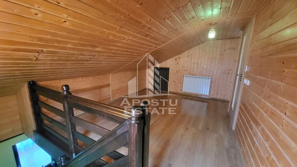 Apostu Estate va propune spre vanzare o casa individuala,cu 3 camere si garaj in Dumbravita. Pe structura P+M,casa se desfasoara pe o suprafata utila de 136 mp si o suprafata teren de 500 mp. Compartimentare: Parter: -hol cu dressing. -dormitor. -baie. -living open space cu bucataria. -terasa acoperita. -camera tehnica in exteriorul casei. -garaj automatizat de 22 mp. Etaj -hol generos -dormitor -baie spatioasa cu cada -dressing(se mai poate face o camera sau birou). Confortul termic se realizeaza prin intermediul centralei si al panoului solar,incalzirea este in calorifere,cheltuieli foarte mici. Amplasata intr-o zona linistita de case,in proximitatea scolii,gradinitei,supermarketelor. Construita din caramida,foarte bine izolata. Anexa cu hidrofor cu foraj. Se vinde precum in poze. Va oferim consultanta si solutii financiare prin colaboratorii nostrii. Va asteptam cu drag la o vizionare!