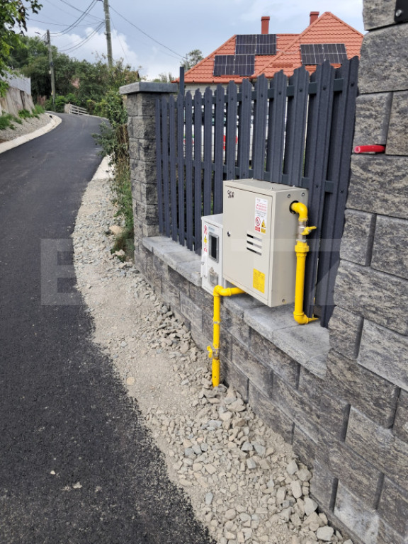 ???? BLITZ IMOBILIARE – Casă Individuală cu Panoramă Superbă în Feleacu, Cluj ???? Locație: Feleacu ???? Tip proprietate: Casă individuală ???? Suprafață teren: 873 mp ????️ Suprafață construită desfășurată: 193 mp ???? Suprafață utilă: aprox. 160 mp ???? Amprentă la sol: 74 mp ???? Teren liber: ~799 mp ???? Terase: 2 x 15 mp ???? Front stradal generos ???? Regim de înălțime: D+P+M ???? Acte la zi, CF liber de sarcini ???? Blitz vă propune în această casă individuală deosebită, situată într-o zonă liniștită, aerisită și cu acces facil spre Cluj-Napoca, DN și centura Vâlcele–Apahida. ???? Caracteristici principale: ???? Construcție nouă (2017–2025), realizată cu materiale premium ???? Poziționare retrasă de la stradă, cu panoramă deosebită ???? Acces facil, direct de pe drum asfaltat ???? Predare: Exterior finisat, Interior semifinisat – perfect pentru personalizare ???? Detalii tehnice și finisaje: ✅ Zidărie din cărămidă 30 cm ✅ Izolație EPS80 – 15 cm ✅ Tâmplărie Salamander Clasa A, 3 foi de sticlă ✅ Încălzire în pardoseală PURMO – 3 grupuri de pompare ✅ Instalații sanitare și electrice trase pe poziții ✅ Acoperiș Bilka – Retro Panel ✅ Poartă de acces autoportantă ✅ Pavaj și placaj din granit ✅ Irigație automată Hunter pentru gazon ???? Compartimentare inteligentă: Demisol Living Bucătărie Baie Cămară Terasă Parter 4 camere Dressing Baie Hol Terasă Etaj Dormitor matrimonial Dressing Baie ???? Exterior generos și funcțional: ???? Parcări amenajate în partea din față ???? Grădină spațioasă în spate – perfectă pentru relaxare în intimitate ???? Zonă ideală pentru familii, aproape de natură dar cu acces facil către oraș ???? Contactează consilierul Blitz pentru o vizionare privată! ???? Nu rata această oportunitate rară! ✔️ Casă individuală nouă ✔️ Zonă aerisită și priveliște deosebită ✔️ Acces asfaltat și infrastructură completă ???? BLITZ – Găsim casa potrivită pentru tine! ???? Disponibilă imediat pentru vizionare ???? Vizionări doar cu programare Cod ofertă / ID BLITZ: P150409 Id intern: P150409