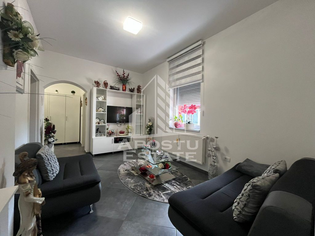 APOSTU ESTATE va propune spre vanzare, o casa individuala ideala situata in zona Elisabetin, pe Bld Liviu Rebreanu. Terenul aferent locuintei are o suprafata de 729mp, un front stradal de 18 ml. Beneficiaza de toate utilitatile: Curent, gaz, apa, canalizare. Confortul termic se realizeaza prin intermediul centralelor proprii pe gaz si aparatele de aer conditionat. In curte exista 1 foisor , folosit ca si bucatarie de vara. Constructia este solida, realizata din caramida, cu izolatie de 10 si decorativa, cu o fundatie de 2,20 m si este construita pe parter. Cu o suprafata de 101 mp utili casa este compartimentata astfel: - 3 dormitoare - baie cu geam si dus - bucatarie cu iesire la terasa - living -foisor de 19 mp cu fundatie de beton. Toate incaperile locuintei sunt foarte spatioase si luminoase.Casa a fost renovata complet in 2018 si dispune de instalatii noi sanitare si electrice si se vinde complet mobilata si utilata. Va asteptam cu drag la o vizionare!