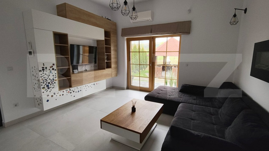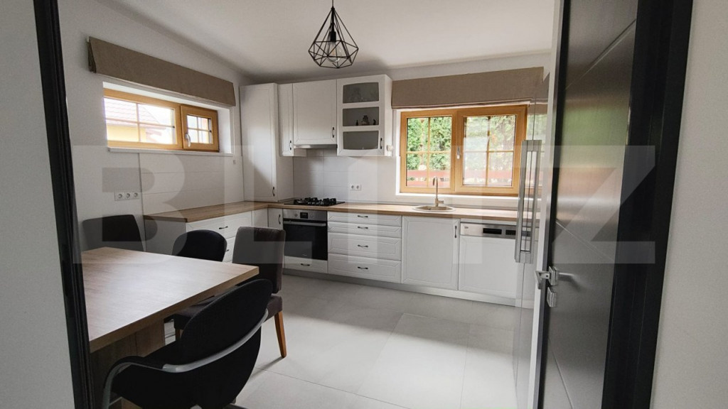 De vanzare casa cu 4 camere, mobilata si utilata. Aceasta se afla situata intr-o zona linistita, cu acces facil la E 60, finalizata in anul 2020, are suprafata construita la sol de 130 mp, dispusa pe un singur nivel si este compartimentata astfel: living, bucatarie, 3 dormitoare, 2 bai si un hol. Este construita din BCA YTONG de 40 cm, izolat cu polistiren de 10 cm, geamuri termopan tripan Salamander Blue Evolution 92, sticla 52 mm. Imobilul beneficiaza de alarma, camere de supraveghere video la exterior, aer conditionat, videointerfon, anexa pt depozitare, foisor, gratar, current trifazic, incalzire in pardoseala, internet prin fibra optica de la RDS, apa din fantana automatizat cu pompe, sistem de filtrare si lampa UV. Pentru mai multe detalii nu ezitati sa ne contactati. Cod ofertă / ID BLITZ: P140112 Id intern: P140112