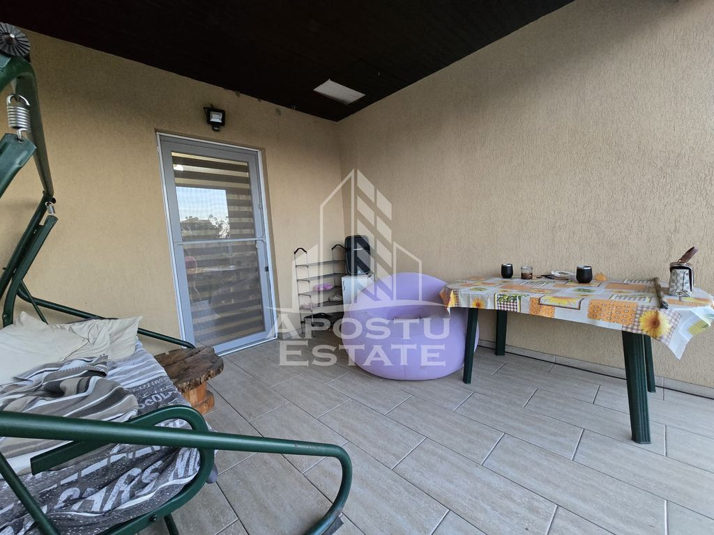 Apostu Estate ofera spre vanzare o casa individuala pe parter, situata in localitatea Sag, zona Manastire, la strada principala asfaltata. Proprietatea are o suprafata utila de 92 mp si un teren de 370 mp, fiind construita in anul 2016. Casa are o compartimentare moderna si functionala, ideala pentru o familie. Dispune de trei dormitoare, o baie spatioasa, living generos cu bucatarie open space si o terasa cu acces direct din living si bucatarie. Terasa ofera acces la podul casei, care poate fi folosit pentru depozitare. Exista posibilitatea amenajarii unei a doua bai, scurgerile fiind deja pregatite pe terasa. Locuinta se vinde complet mobilata si utilata, exact asa cum se vede in imagini. Este finisata cu gresie, faianta, parchet, obiecte sanitare de calitate si se prezinta intr-o stare excelenta. Constructia este realizata integral din caramida interior-exterior, acoperis din tigla si izolatie exterioara, oferind rezistenta si confort termic pe termen lung. Incalzirea este asigurata de centrala proprie pe gaz, iar in plus casa dispune de un sistem fotovoltaic modern, instalat recent, cu putere de 11 kw si baterii de stocare de 10 kw, care transforma locuinta intr-o casa aproape independenta energetic, cu costuri minime de intretinere. Proprietatea beneficiaza de utilitati complete: curent electric, gaz, foraj, fosa septica, iar in cateva luni va fi racordata si la reteaua de apa si canalizare a localitatii. Aceasta casa reprezinta alegerea ideala pentru o familie care isi doreste confort, liniste, acces rapid catre Timisoara si o investitie sigura pe termen lung. Se ofera consultanta bancara gratuita prin partenerii nostri pentru alegerea celui mai avantajos credit. Contacteaza-ne chiar astazi pentru detalii si programeaza o vizionare.