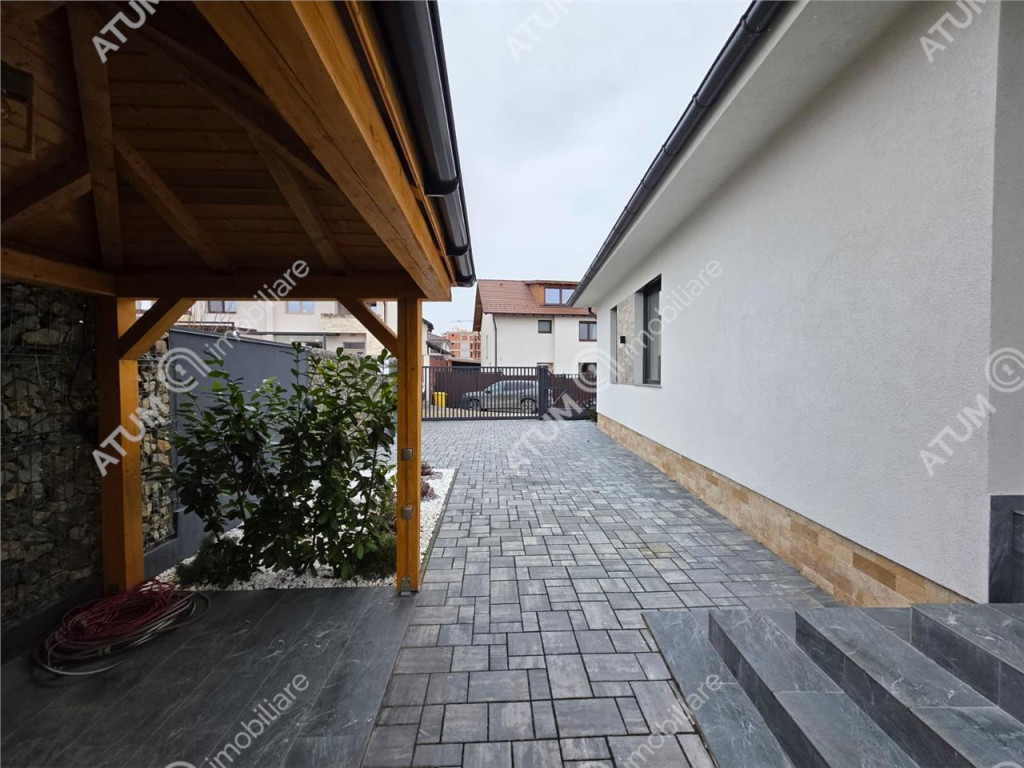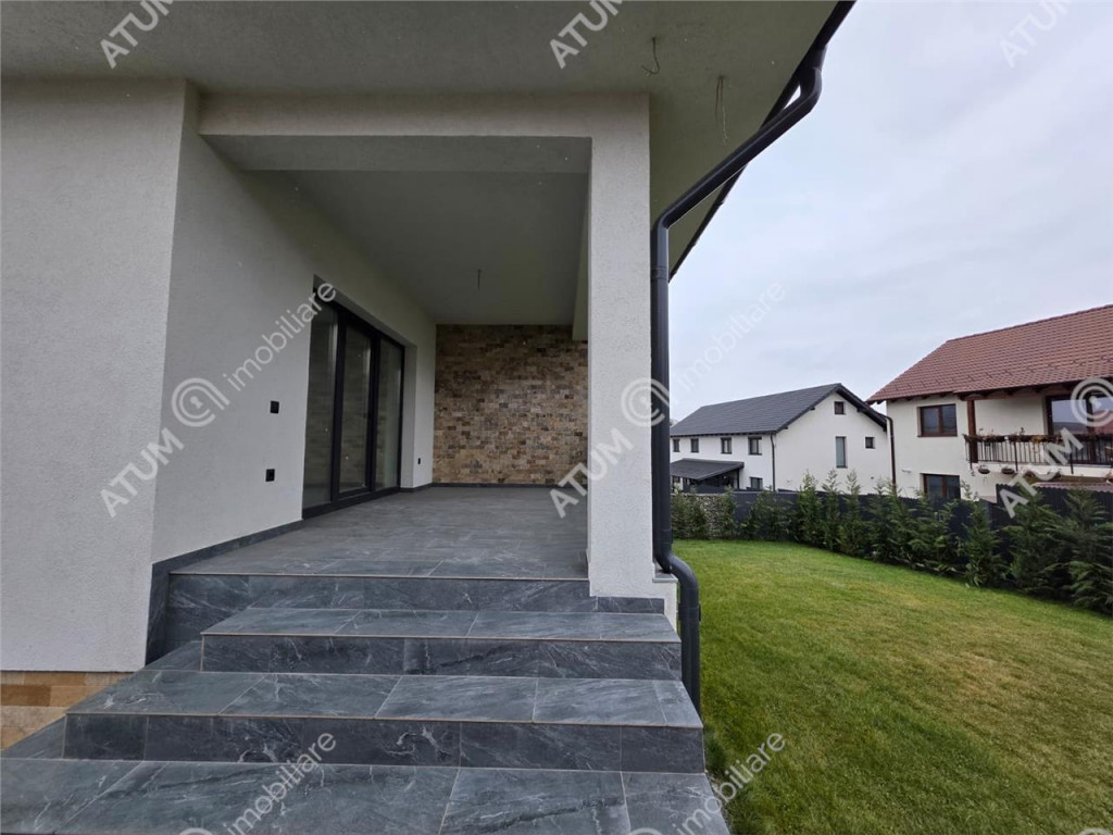 Atum Imobiliare va propune spre vanzare o casa individuala cu 4 camere decomandate si curte proprie, in suprafata totala de 257 mp, pozitionata pe un teren de 490 mp in comuna Selimbar din judetul Sibiu. Amprenta la sol a imobilului este de 160 mp, cu o deschidere stradala de 20 m, facand posibil accesul auto, iar terenul liber masoara 330 mp, acesta fiind amenajat cu cale de acces auto, cai de acces pietonale pavate cu dale din beton, zona verde in spatele casei amenajata cu gazon, flori decorative, arbusti decorativi si un foisor dotat cu gratar. Locuinta este distribuita pe Demisol Parter si insumeaza 200 mp utili, aceasta fiind compusa din: parter unde gasim living de 27 mp, bucatarie aproximativ 12 mp, 3 dormitoare matrimoniale de aproximativ 15 mp, dintre care unul are dressing propriu de 2.4 mp, hol de 17 mp iar la demisol un garaj de 50 mp dotat cu usa culisanta electrica, camera tehnica de 14 mp si pivnita de 14 mp. Separat de suprafata utila mai detine o terasa de 13 mp. Casa a fost construita in anul 2025, iar din punct de vedere tehnic aceasta a fost edificata pe structura din beton si zidarie din BCA de 30 cm grosime peste care a fost aplicat termosistemul exterior din polistiren expandat de 10 cm cu densitatea EPS 80 si decorativa siliconata. Planseul este realizat din beton. Casa (spatiul de locuit) se preda la stadiul de alb, iar demisolul la cheie. Valoarea de achizite este de 425.000 euro negociabil, aceasta putand fi achizitionata si prin accesarea unui credit bancar. ID intern: 3254.