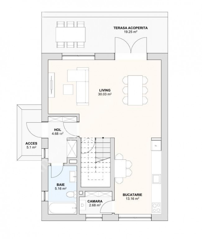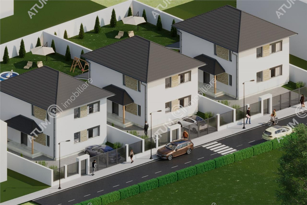 De vanzare casa individuala cu 4 camere in suprafata totala de 168,35 mp pozitionata pe un teren generos de 380 mp aflat pe colt, localizata in Sura Mica zona Sportului, o zona rezidentiala noua si moderna. Imobilul pozitionat pe un teren de 380 mp are ampentra la sol de 90 mp astfel curtea libera ramasa masoara 290 mp cu front stradal de 14 m care dispune de acces auto. Terenul este imprejmuit si se amenajeaza cu pavaj atat in zona cailor de acces auto si pietonal cat si cele doua locuri de parcare, astfel casa fiind retrasa fata de limita de proprietate se poate amenaja in fata o zona florala decorativa iar in spate o zona de relaxare care se poate amenaja cu filigorie, gazon, arbusti decorativi. Casa masoara suprafata utila de 120 mp utili, distribuiti pe Parter si Etaj: Parterul este compus dintr-un living de 30.03 mp unde poate fi amenajat si un dinning pentru mesele in familie, bucatarie open space care se poate separa cu usurinta 13.16 mp cu acces la o camara 2.68 mp, hol de 4.68 mp unde este amenajata zona primire cu pantofar si cuier si baia de 5,16 mp dotata cu geam de aerisire si racorduri pregatite pentru cada. Etajul este alcatuit din 3 dormitoare dintre care dormitorul matrimonial masoara 13.97 mp si dispune de propria baie de 7,20 mp dotata cu geam de aeirsire si racorduri pregatite pentru cada, celelalte 2 dormitoare au suprafete de 12,53 mp si respectiv 12,41 mp destinate copiilor sau oaspetilor sau unde poate fi amenajat chiar un dressing, o baie de 5,93 mp dotata cu geam de aerisire si un hol de 3.05 mp. Separat de suprafata utila, casa dispune si de o terasa de 19,25 mp in care accesul se face din camera de zi, un podest de acces acoperit prin intermediul caruia se face accesul in casa si podul care se desfasoara pe intraga suprafata a etajului. Parcarea se realizeaza in curtea proprie si se pot parca 2 autoturisme. Casa se preda la stadiul de gri avansat cu dotari si finisaje precum: -Centrala proprie pe gaz in condesatie cu senzor de gaz si incalzire in pardoseala cu ; -Tamplarie PVC cu geam termonan 7 camere 3 foi de sticla Sallamander LOW-E; -Usa de acces din PVC izolatoare termic si fonic; -Plansee realizate din beton armat si lemn izolat cu vata minerala de 20 cm; -Zidari din caramida cu grosimea de 30 cm; -Pereti tencuiti ( tencuiala var-ciment ), gletuiti; -Instalatii electrice cu tablou general individual si sigurante pentru consumatorii de putere, doze, dulii, instalatii pentru curenti slabi ( TV, Telefon, Internet ); -Racorduri apa-canal in baie si bucatarie; -Racord gaz metan in bucatarie; -Contorizari individuale si contoare montate pentru Gaz, Curent si Apa; Din punct de vedere structural imobil este edificat pe structura portanta realizata din beton si zidarie din caramida cu grosimea de 30 cm, anvelopare termica exterioara realizata din polistiren de 10 cm densitate EPS 80, zugraveli decorative de exterior cu vopsea decorativa siliconata, acoperis terasat izolat termic si hidroizolat. Valoarea de achizitie este de 197.000 euro, aceasta se poate achizitiona prin accesarea unui credit bancar. ID intern: 3388.